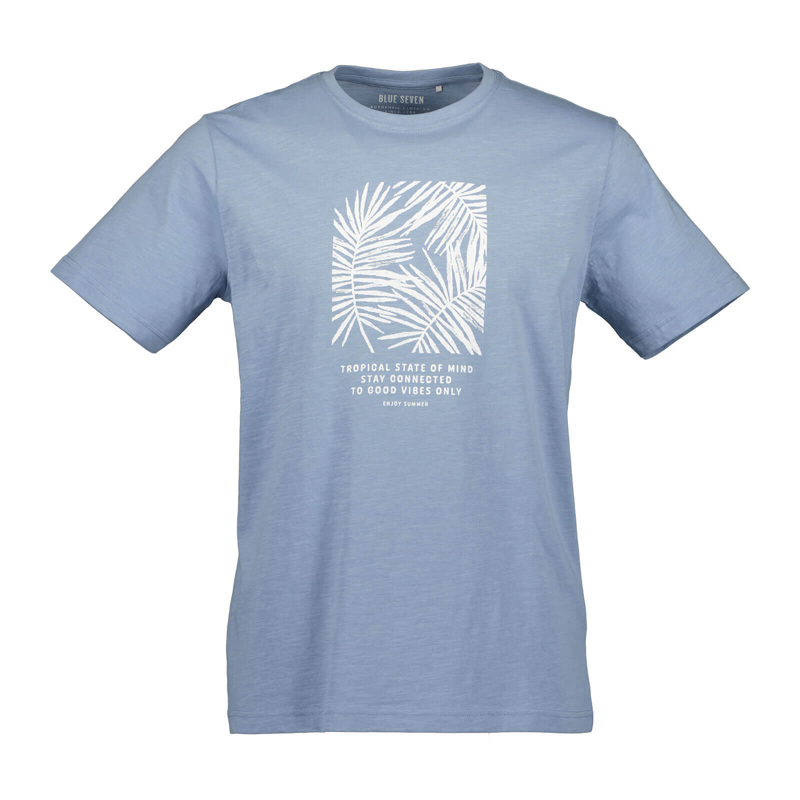Blue Seven Herren T-Shirt mit modischen Frontprint - Kurzarm-Shirt aus Baumwolle in Hell Blau Größe M