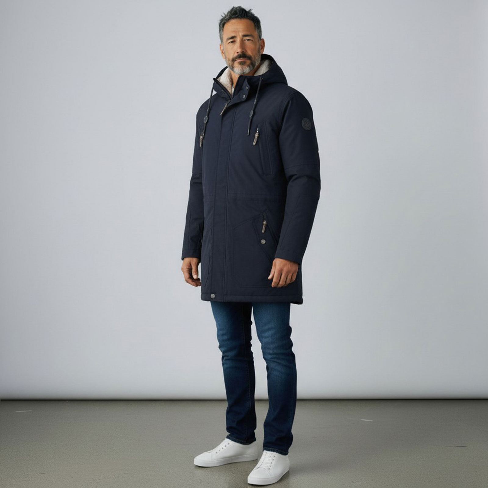 Der Herren Funktionsparka Kuddel ist mehr als nur eine Jacke; er ist eine Erklärung für Qualität und Design. Dieses Stück verkörpert den modernen, urbanen Stil und bietet gleichzeitig die robuste Funktionalität, die Sie von einer Outdoor-Jacke erwarten.
