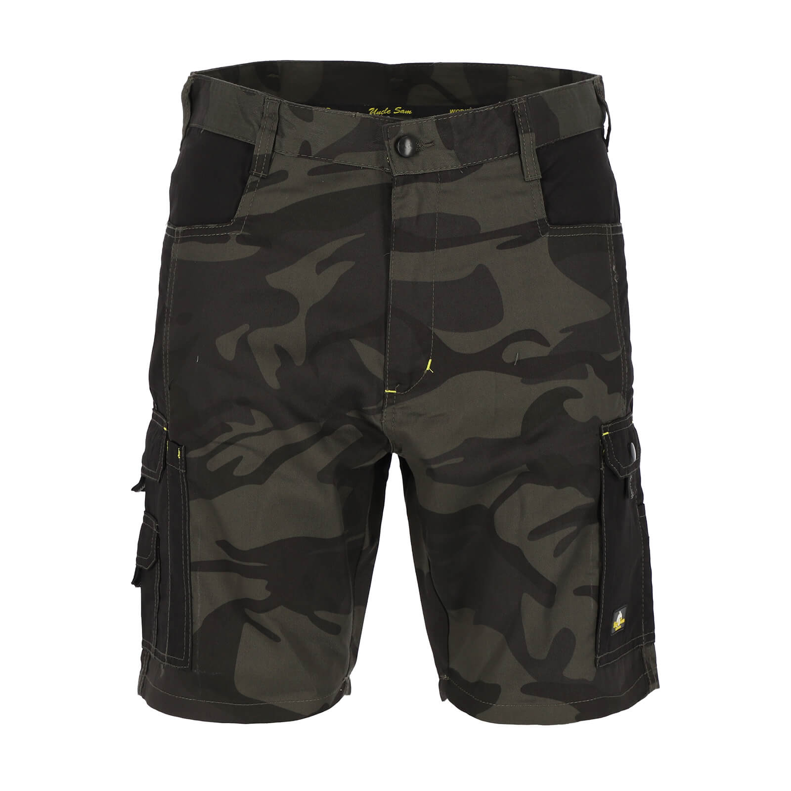Uncle Sam Herren Arbeitsshorts im modischen Camouflage-Muster - Kurze Arbeitshose mit Beintaschen in Oliv-Schwarz Größe 48