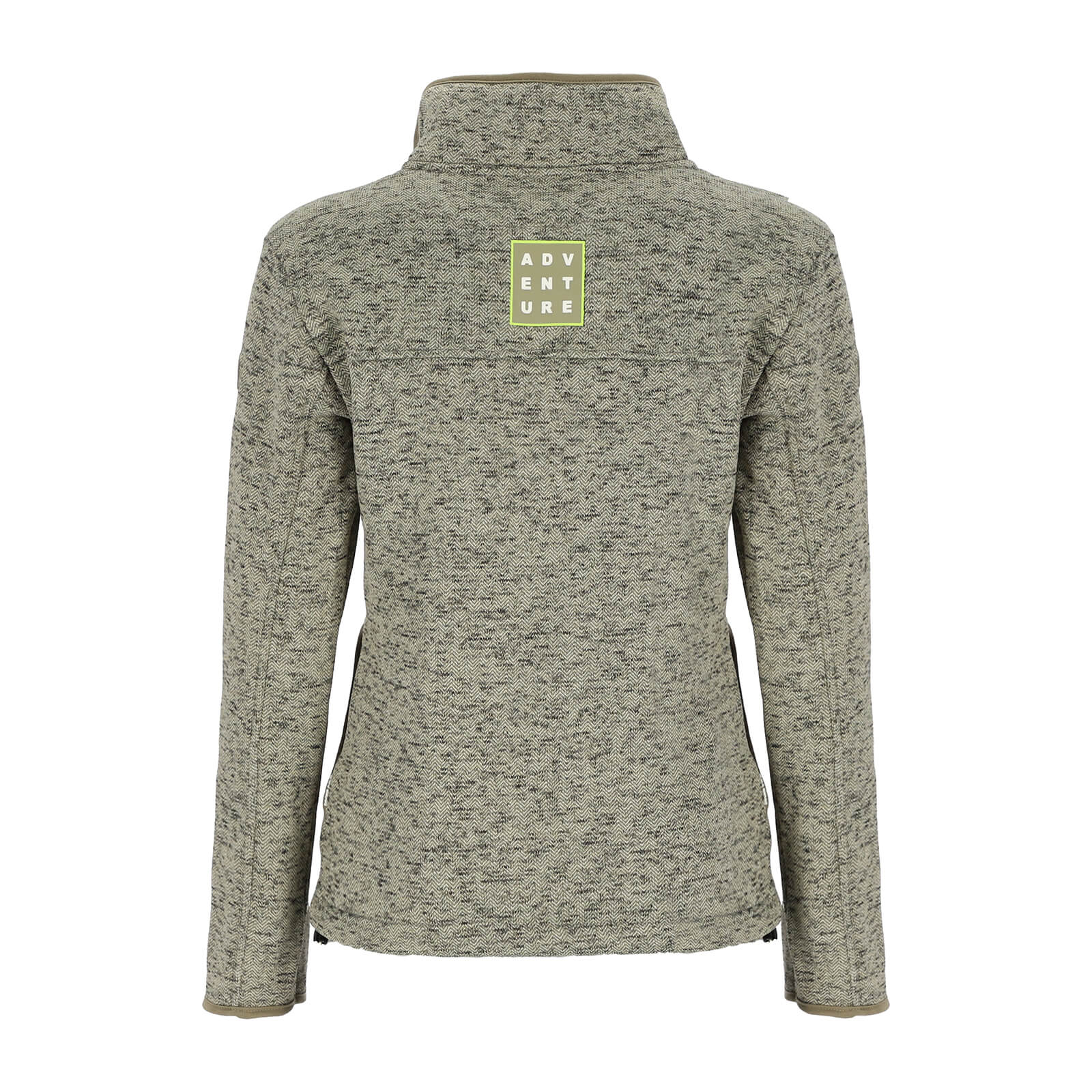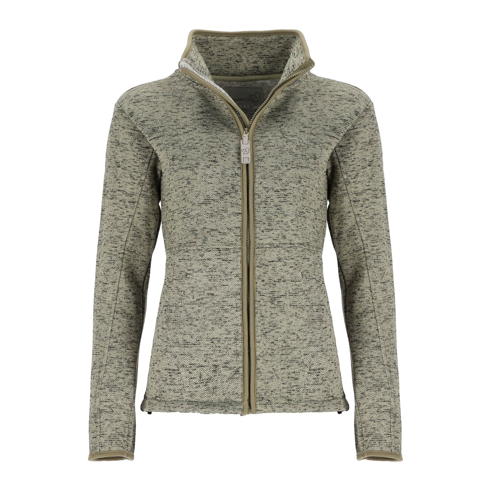 Baumfuchs Damen Strickfleecejacke im Zick-Zack-Streifen-Design - Fleecejacke mit Stehkragen in Oliv Größe M