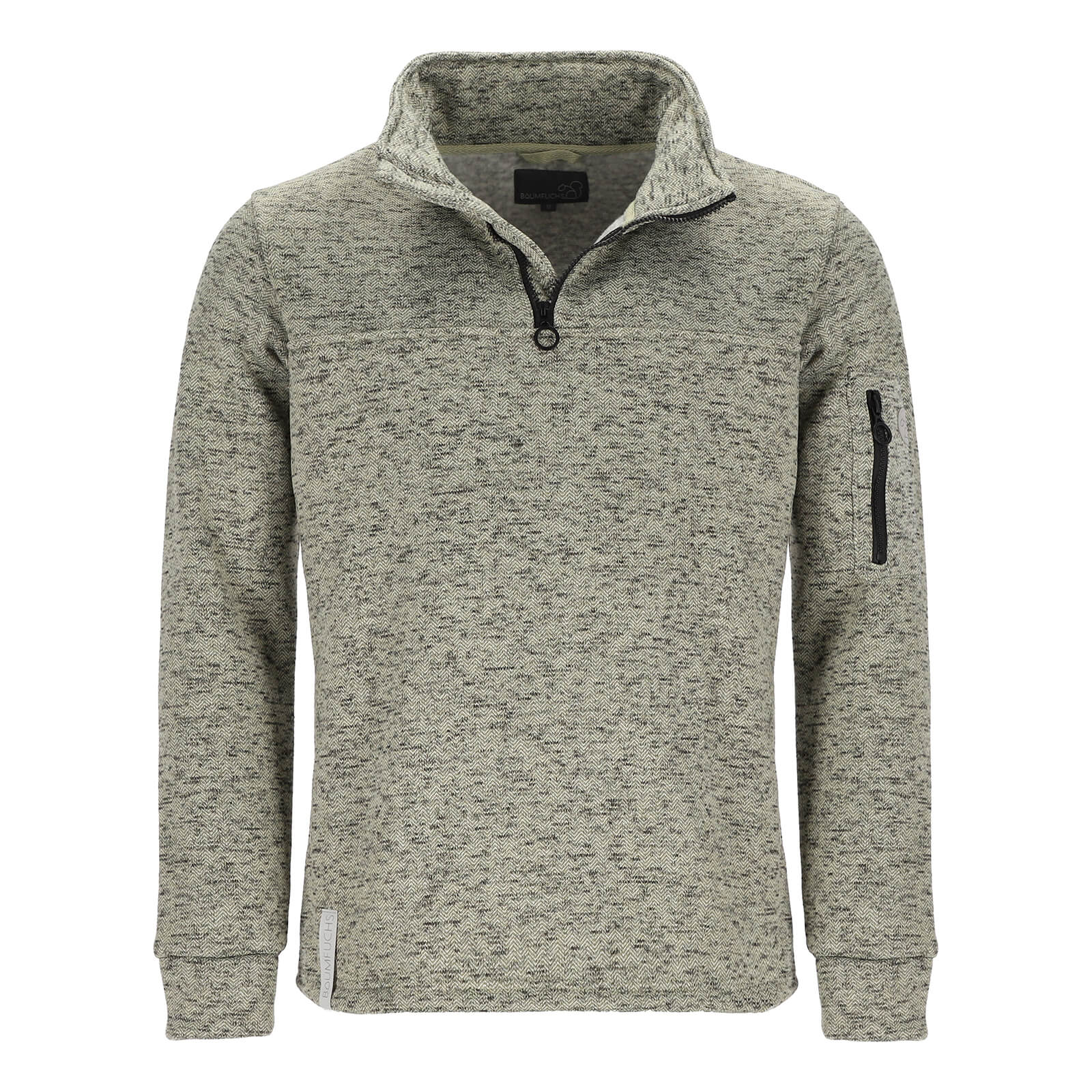 Baumfuchs Herren Troyer Strickfleece unifarben - Pullover mit Troyer-Kragen und Ärmeltasche in Oliv Größe M