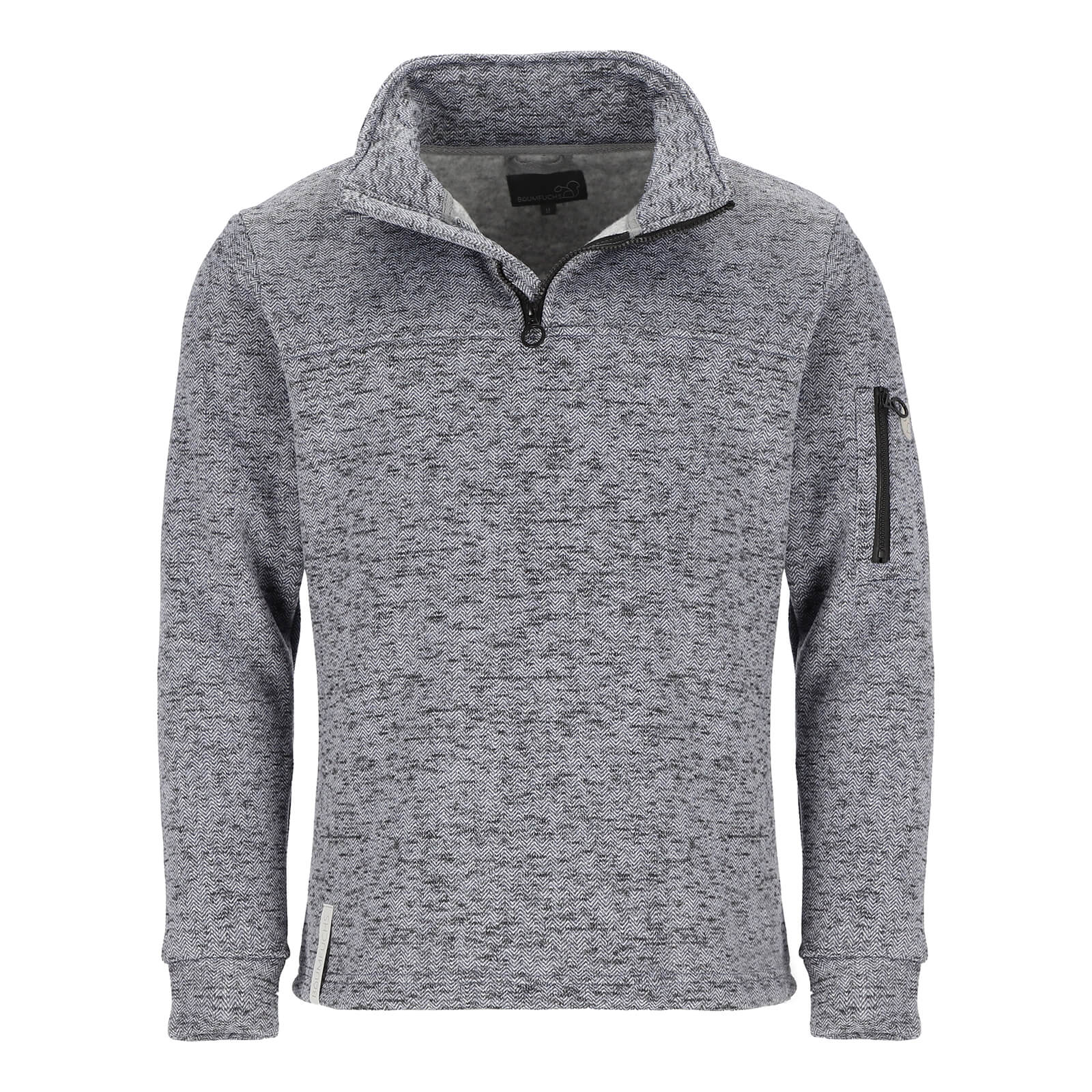 Baumfuchs Herren Troyer Strickfleece unifarben - Pullover mit Troyer-Kragen und Ärmeltasche