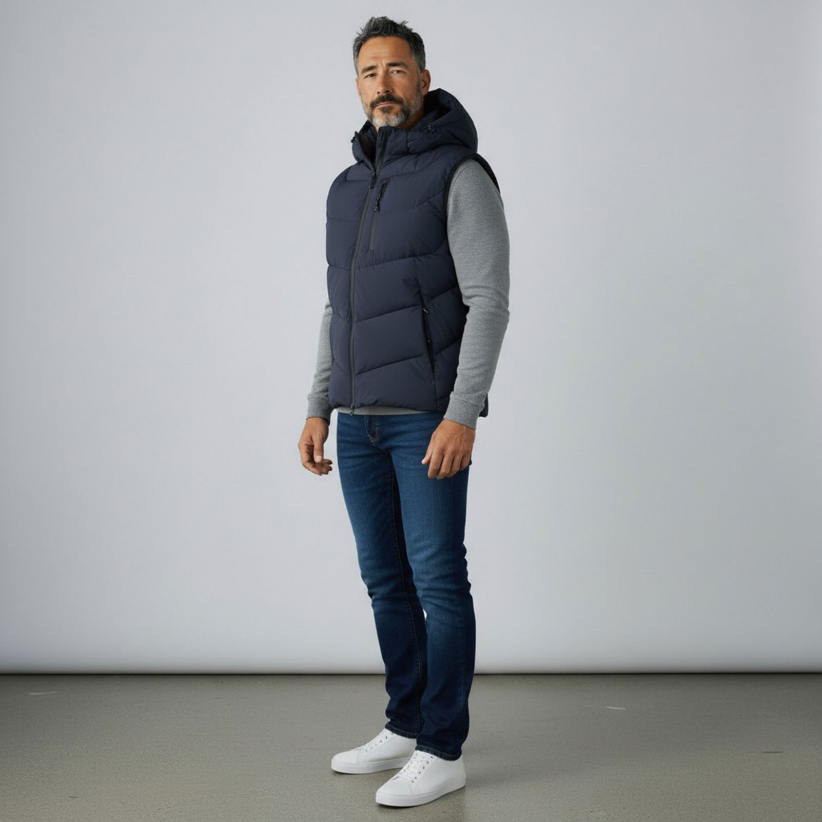 Unsere Herren Steppweste Jasper ist der ideale Begleiter für jeden modernen Mann, der Wert auf Stil und Funktionalität legt.