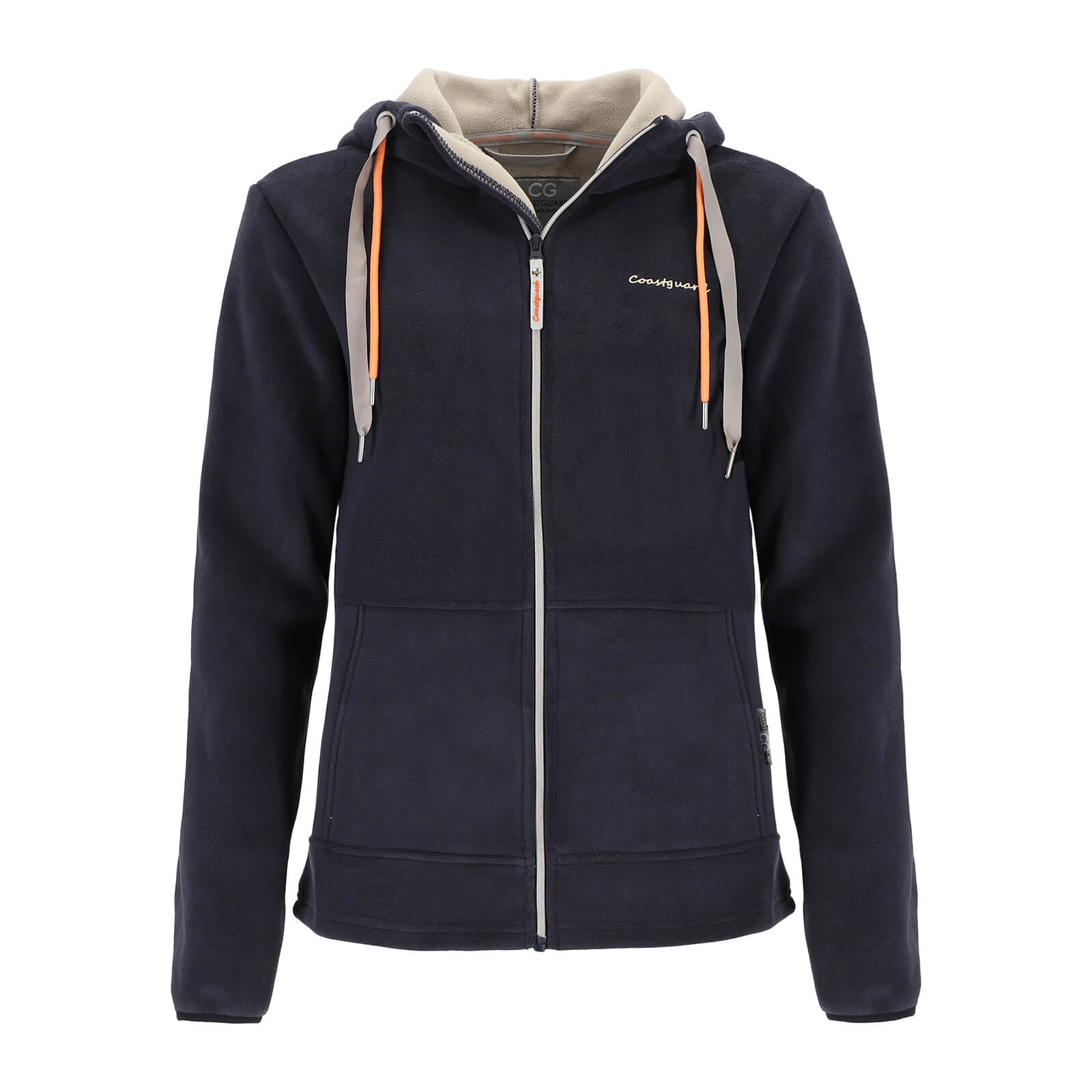 Coastguard Damen Fleecejacke gebondet mit angeschnittener Kapuze - Unifarbige Jacke mit Reißverschluss