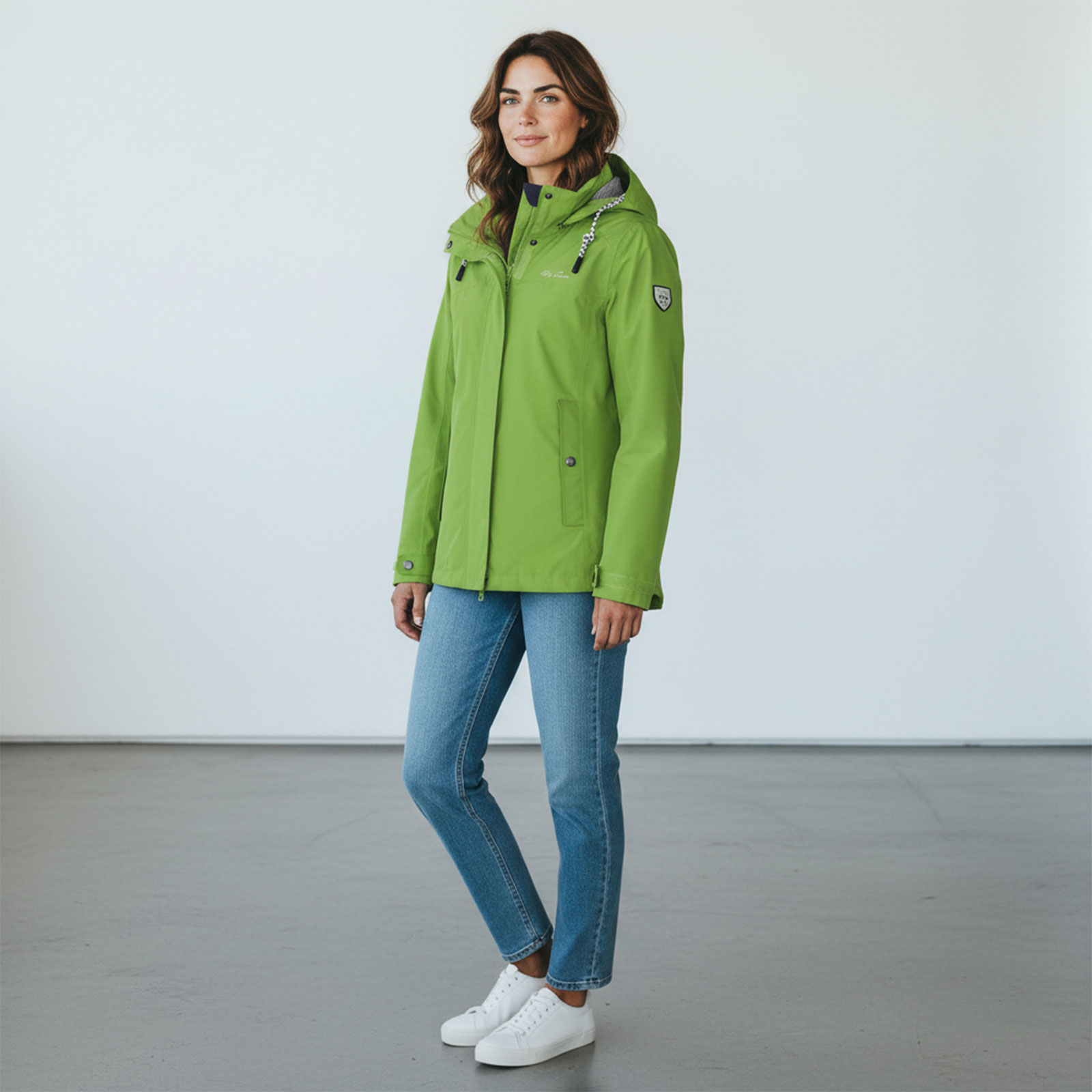 Diese Funktionsjacke ist atmungsaktiv, winddicht und wasserdicht, ideal für wechselhaftes Wetter. Die hochwertigen, verschweißten Nähte bieten zusätzlichen Schutz vor Wind und Regen. Der taillierte Schnitt der Jacke schmeichelt der Figur, während die verstellbare Taillenregulierung eine individuelle Anpassung ermöglicht. Die verstellbare und abnehmbare Kapuze bietet Flexibilität und Schutz in unterschiedlichen Wetterlagen. Der Kinnschutz und der abgedeckte 2-Wege-Frontreißverschluss sorgen für zusätzlichen Komfort und Schutz vor den Elementen. Innen- und Seitentaschen mit Reißverschluss bieten sicheren Stauraum für Ihre Essentials. Das gestreifte Innenfutter gibt der Jacke einen besonderen, modischen Touch. Die individuell anpassbaren Armbündchen und das verlängerte Rückenteil bieten sowohl Komfort als auch Schutz.