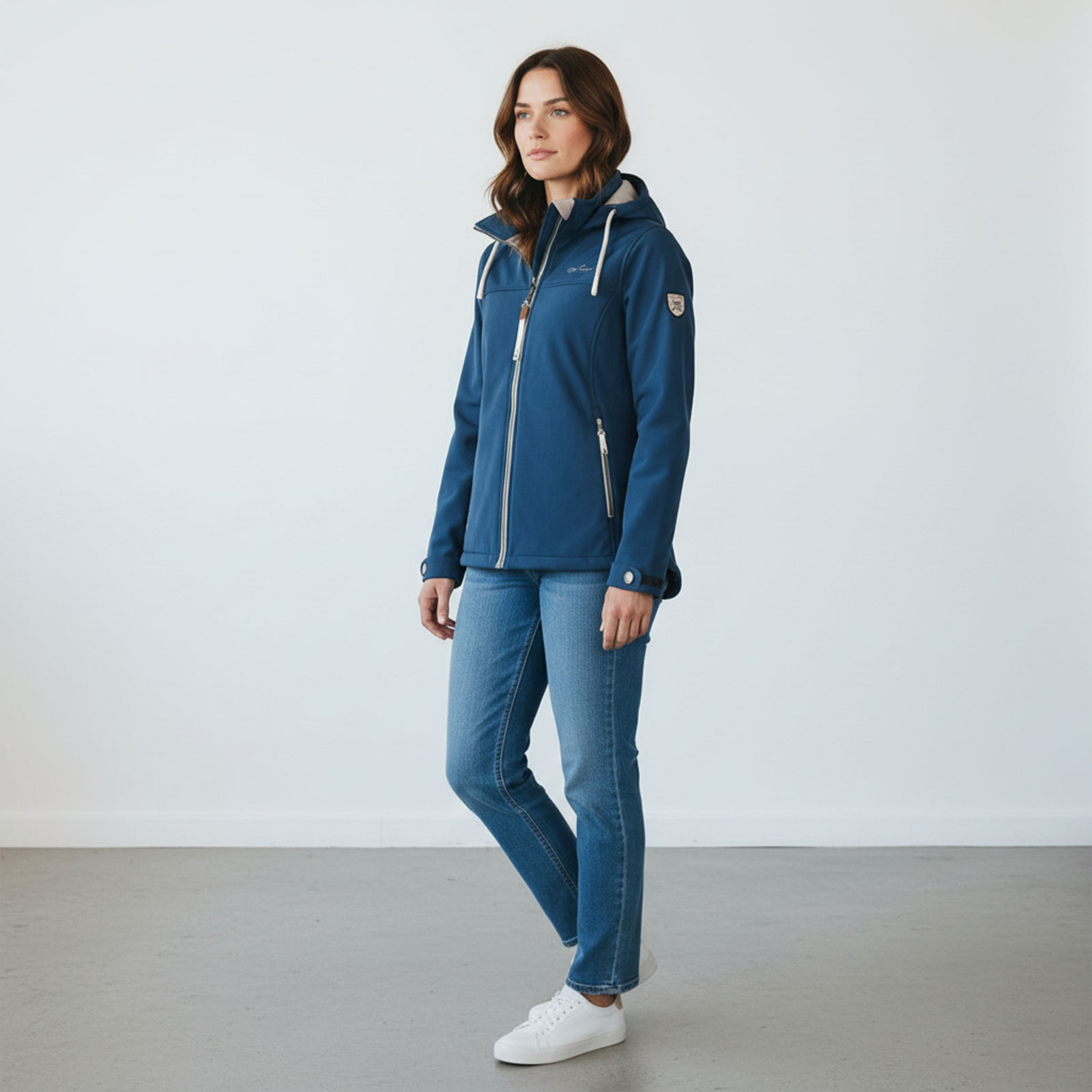 Unsere atmungsaktive, wind- und wasserabweisende Jacke hält Sie bei allen Outdoor-Aktivitäten trocken und komfortabel. Ausgestattet mit einer hochwertigen 3-Lagen Stretch Softshell und einer hydrophilen PU-Membran, bietet diese Jacke optimalen Schutz vor den Elementen. Das weiche Fleece-Innenfutter sorgt für zusätzliche Wärme. Der taillierte Schnitt der Jacke schmeichelt der weiblichen Silhouette und bietet gleichzeitig Bewegungsfreiheit. Die mehrfach verstellbare und abnehmbare Kapuze bietet Anpassungsmöglichkeiten für unterschiedliche Wetterbedingungen. Ein Kinnschutz am Reißverschluss sorgt für zusätzlichen Komfort. Die praktischen Seitentaschen mit Reißverschluss und eine Innentasche bieten genügend Stauraum für Ihre Essentials. Der hinterlegte 2-Wege-Frontreißverschluss ermöglicht eine flexible Handhabung. Passen Sie die Jacke mit den individuell anpassbaren Armbündchen an Ihre Bedürfnisse an. Das verlängerte Rückenteil bietet zusätzlichen Schutz und eine stilvolle Optik.