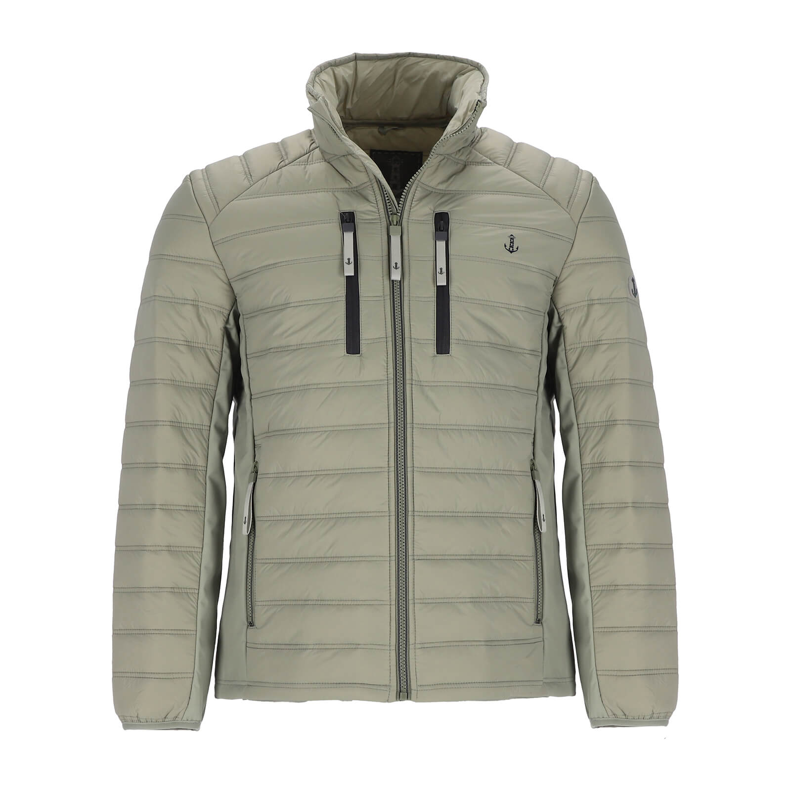 Leitfeuer Herren Steppjacke mit Stehkragen - Gesteppte Jacke mit Einsätzen aus Softshell in Khaki Größe M
