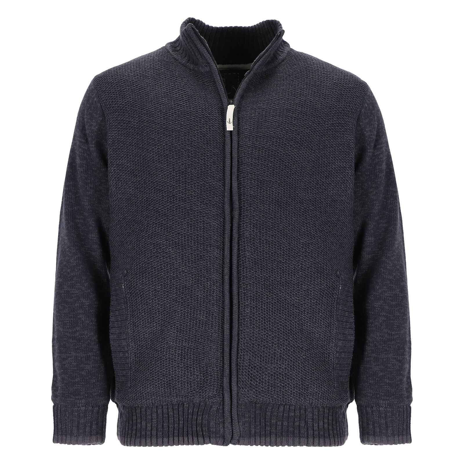 Leitfeuer Herren Strickjacke mit Stehkragen - Unifarbene Jacke mit Reißverschluss