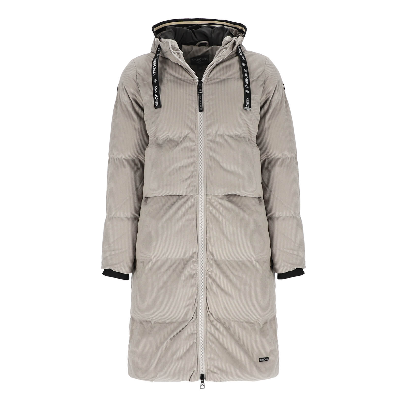 River Creek Damen Cordmantel mit angeschnittener Kapuze - Unifarbener Mantel mit Futter