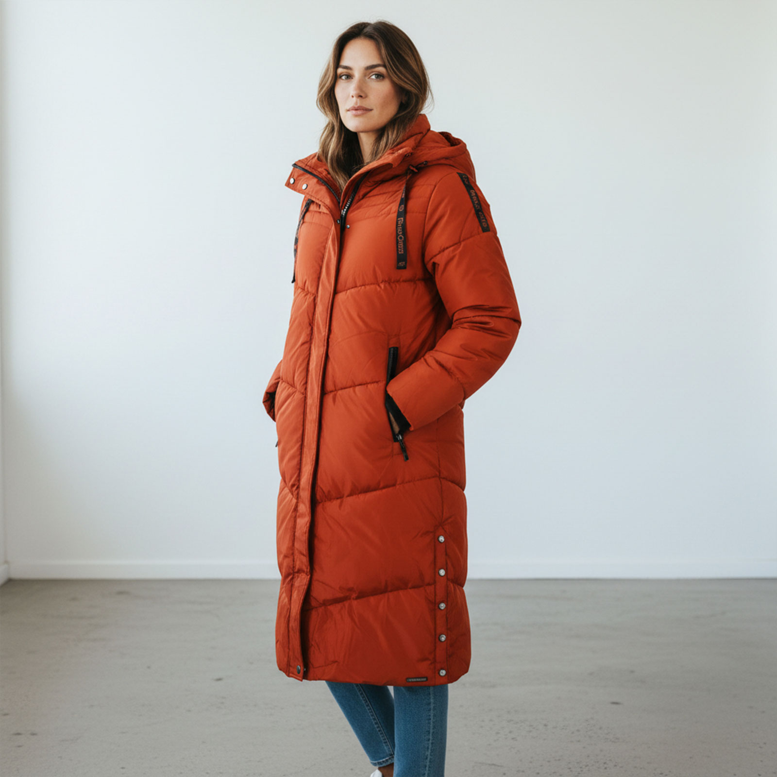 Mit seiner angeschnittenen Kapuze, dem farblich abgesetzten Kordelzug sowie dem dezenten Kontrast-Tape setzt er modische Akzente, ohne auf Funktionalität zu verzichten. Besonders praktisch: Die geknöpften Schlitze an der Seite sorgen für mehr Bewegungsfreiheit und lassen sich individuell anpassen. Zwei Taschen im oberen Frontbereich mit schwarzen, extralangen Zweiwege-Reißverschlüssen bieten ausreichend Stauraum für Smartphone, Schlüssel & Co. Die Rückenlänge von ca. 106 cm garantiert dabei angenehme Wärme bis über die Hüfte hinaus – ideal für Damen, die Wert auf stilvollen Wetterschutz legen.