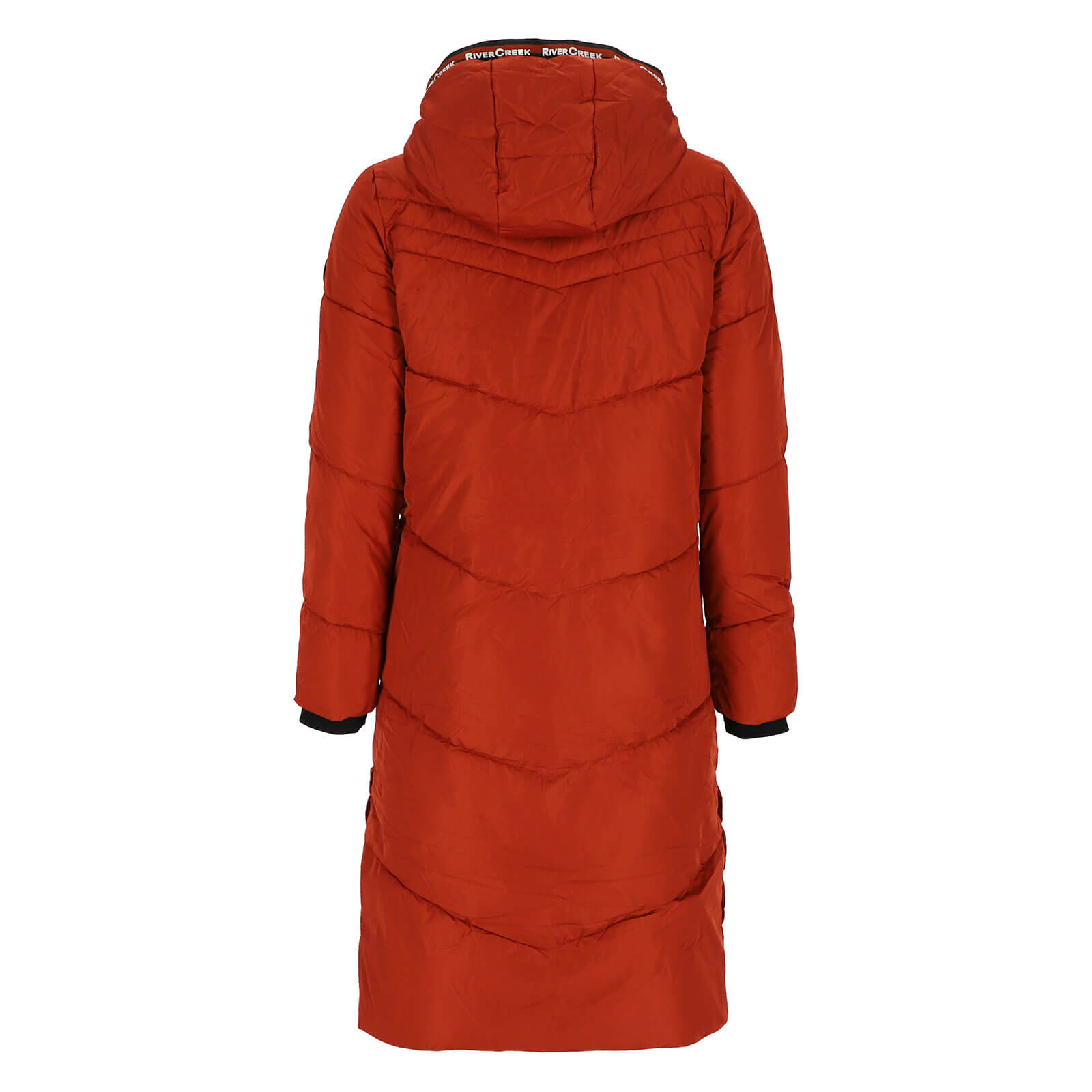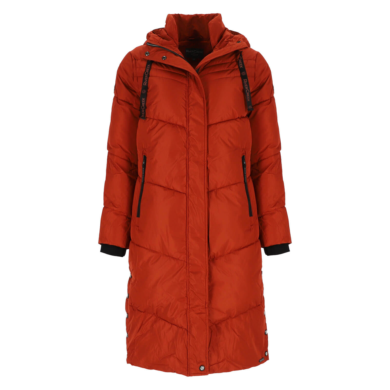 River Creek Damen Steppmantel mit angeschnittener Kapuze - Gesteppter Mantel mit geknöpften Seitenschlitzen
