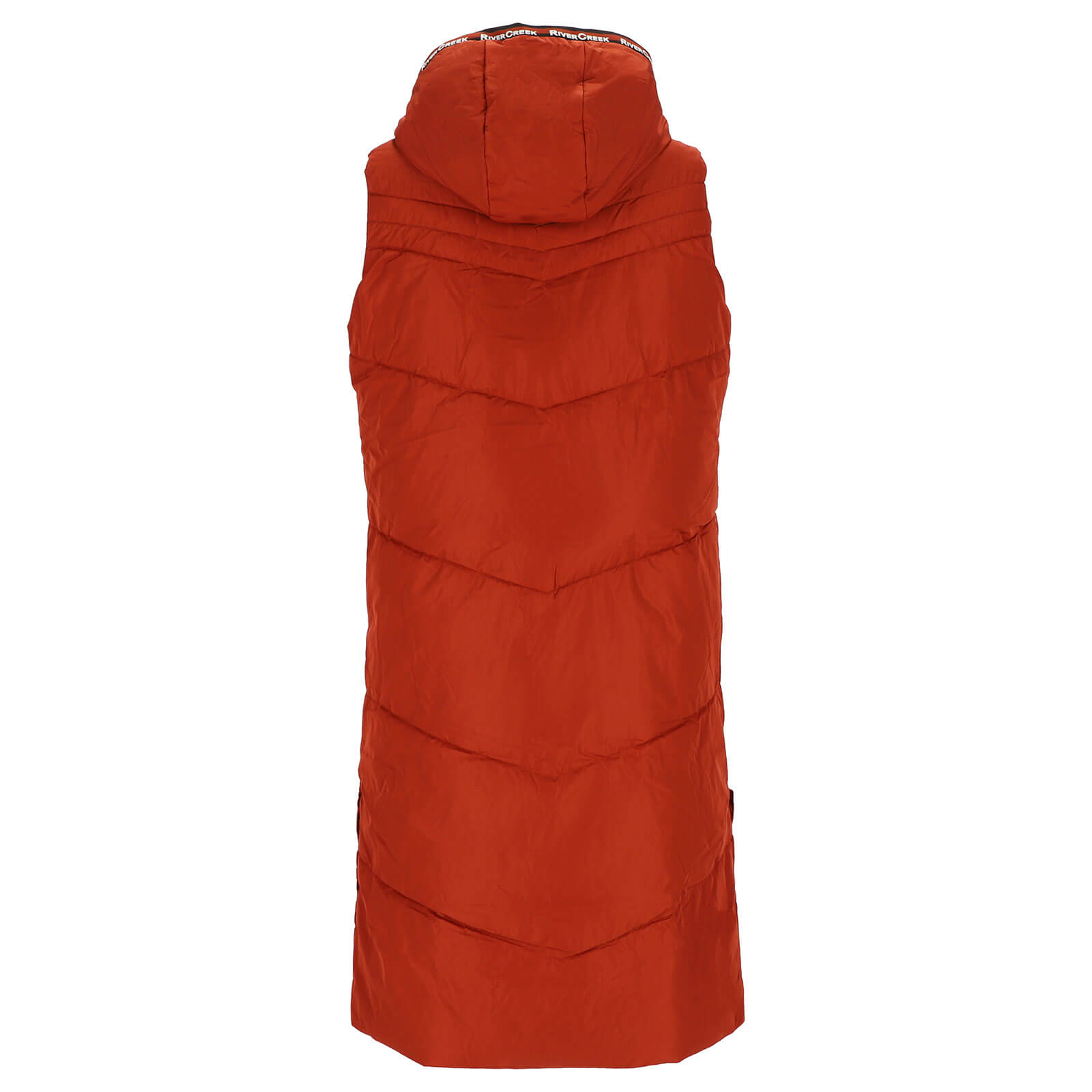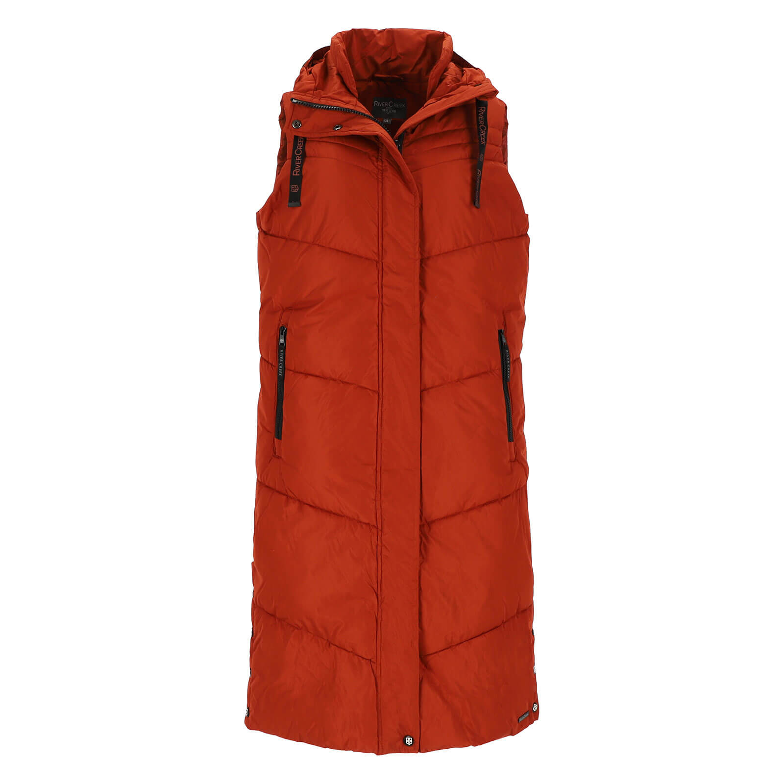 River Creek Damen Steppweste lang mit angeschnittener Kapuze - Gesteppte Langweste mit geknöpften Seitenschlitzen