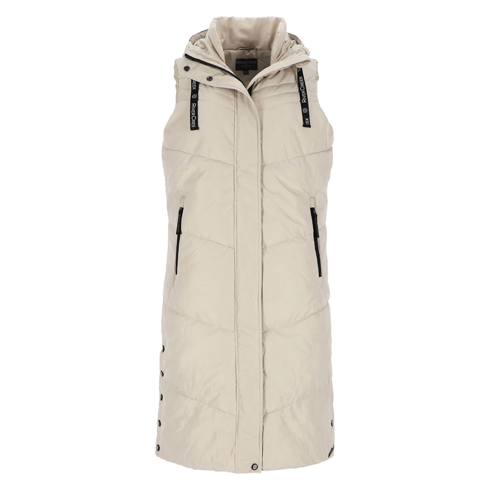 River Creek Damen Steppweste lang mit angeschnittener Kapuze - Gesteppte Langweste mit geknöpften Seitenschlitzen
