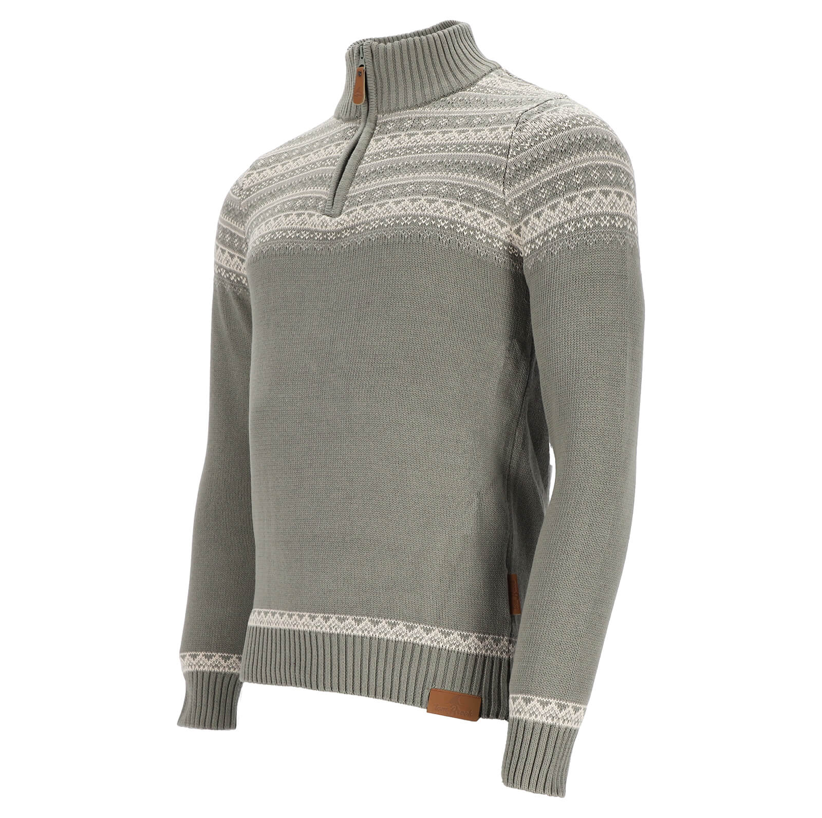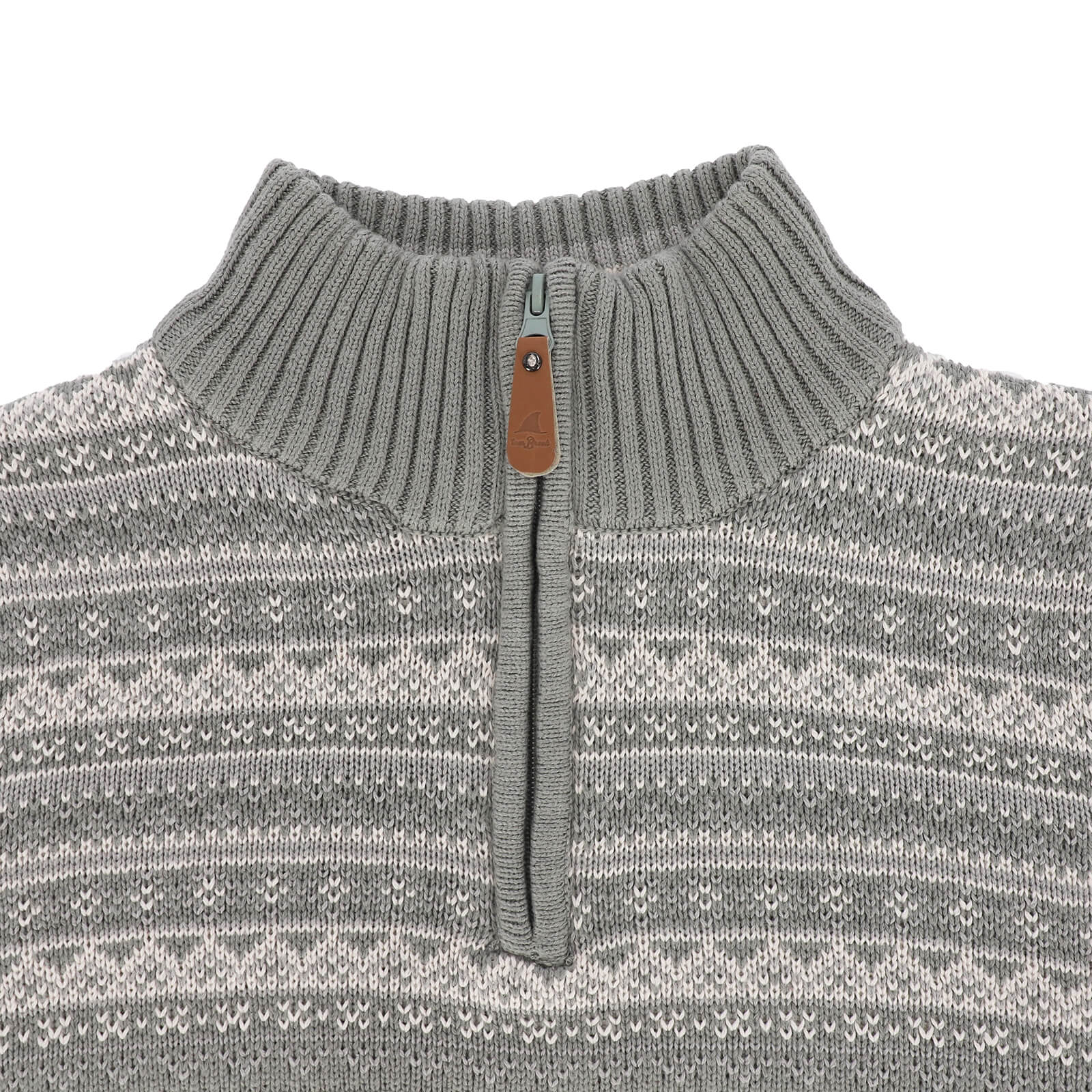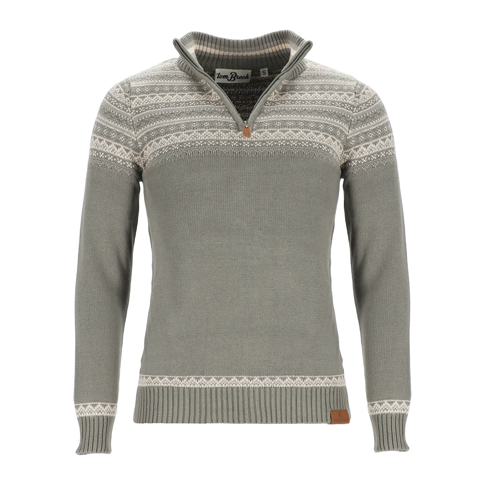 tomBrook Herren Troyer mit Norweger-Strick-Muster - Strickpullover mit Troyer-Kragen aus Baumwolle in Grau-Grün Größe S