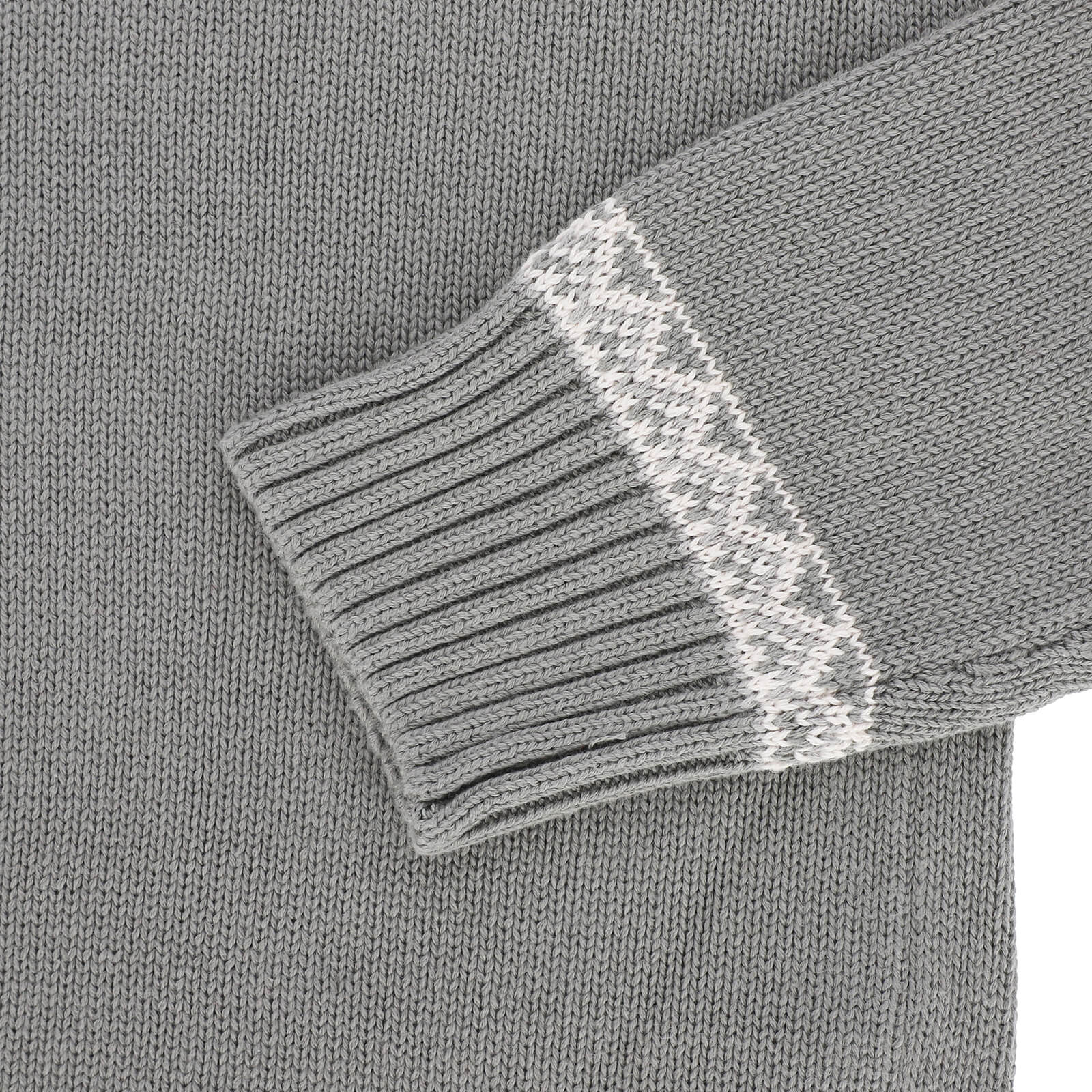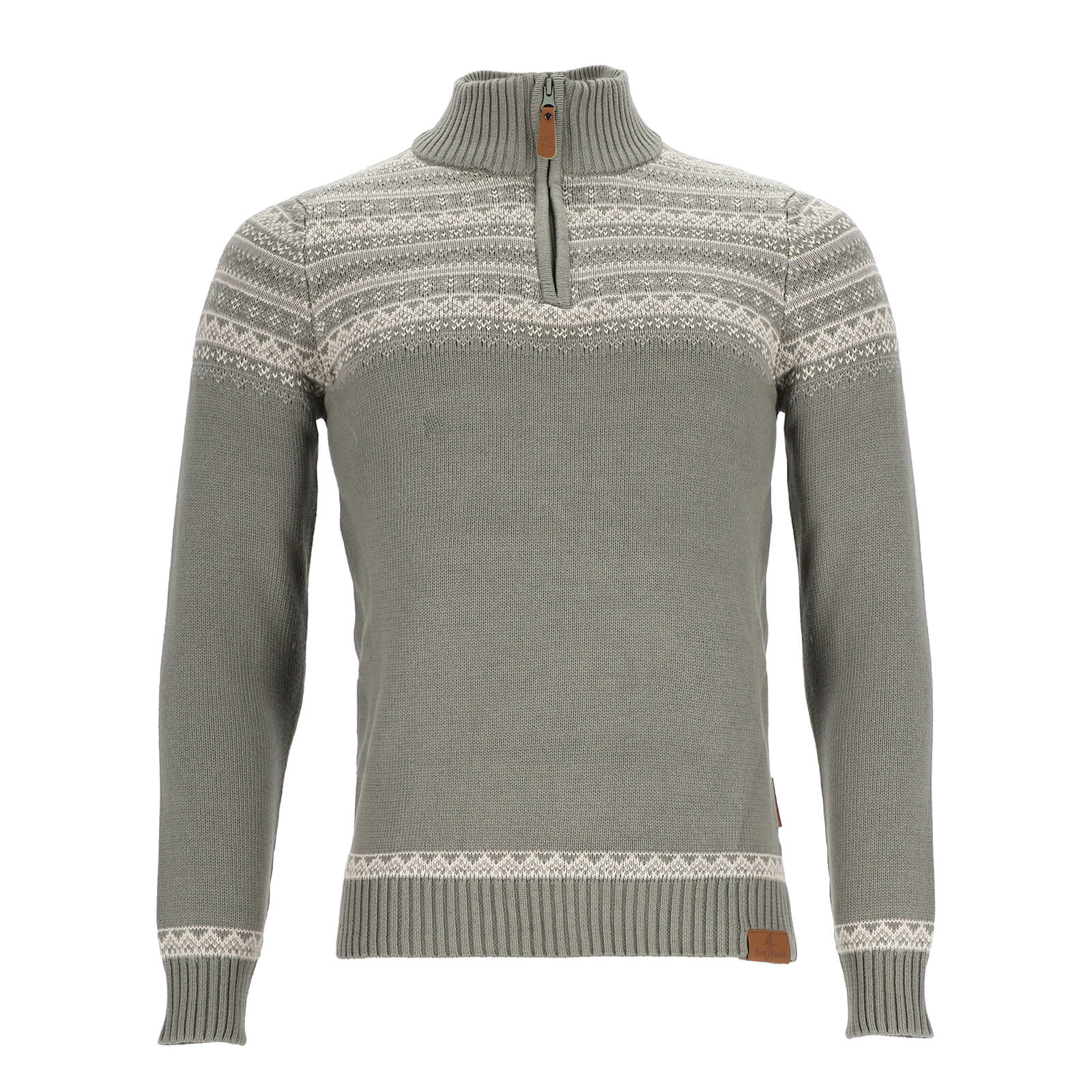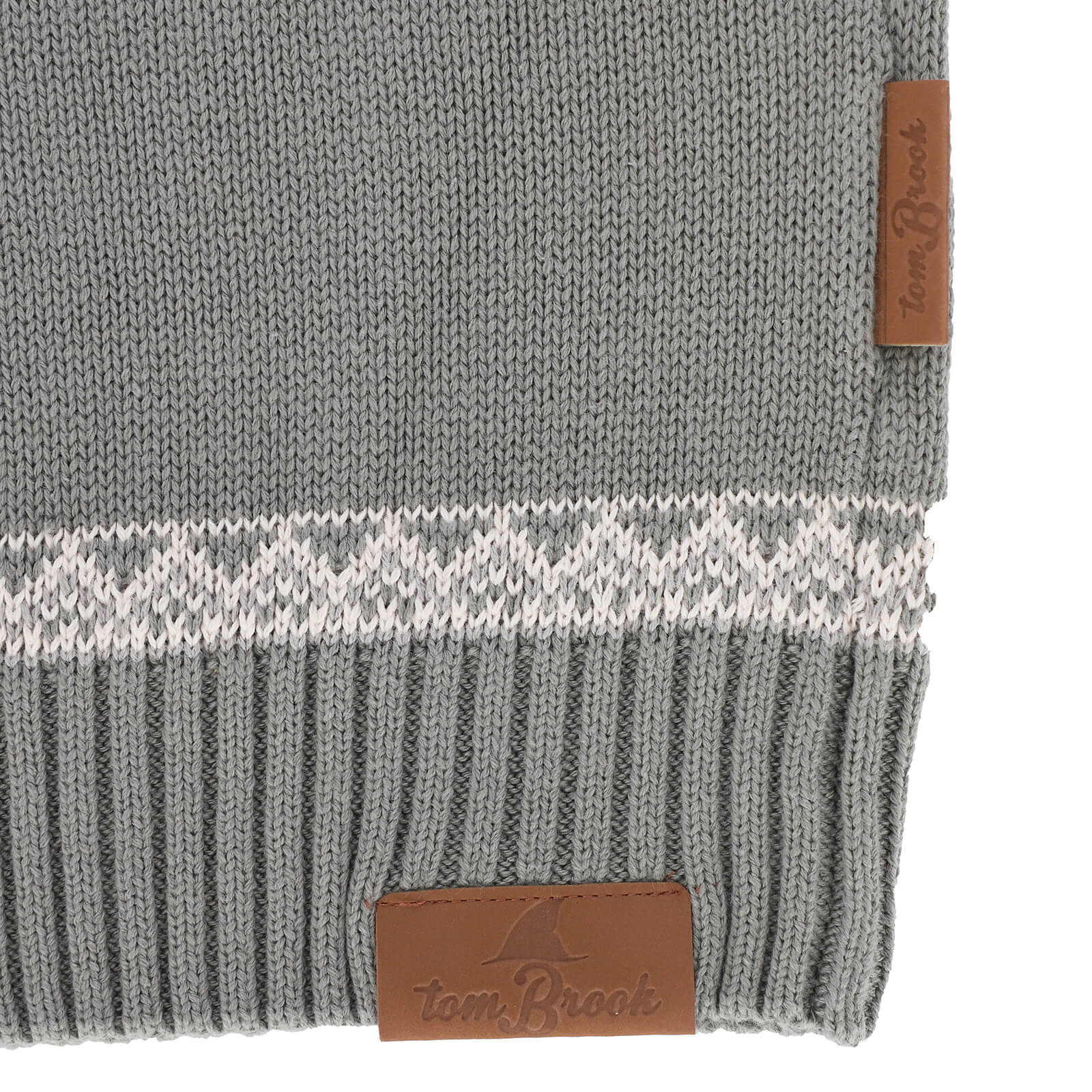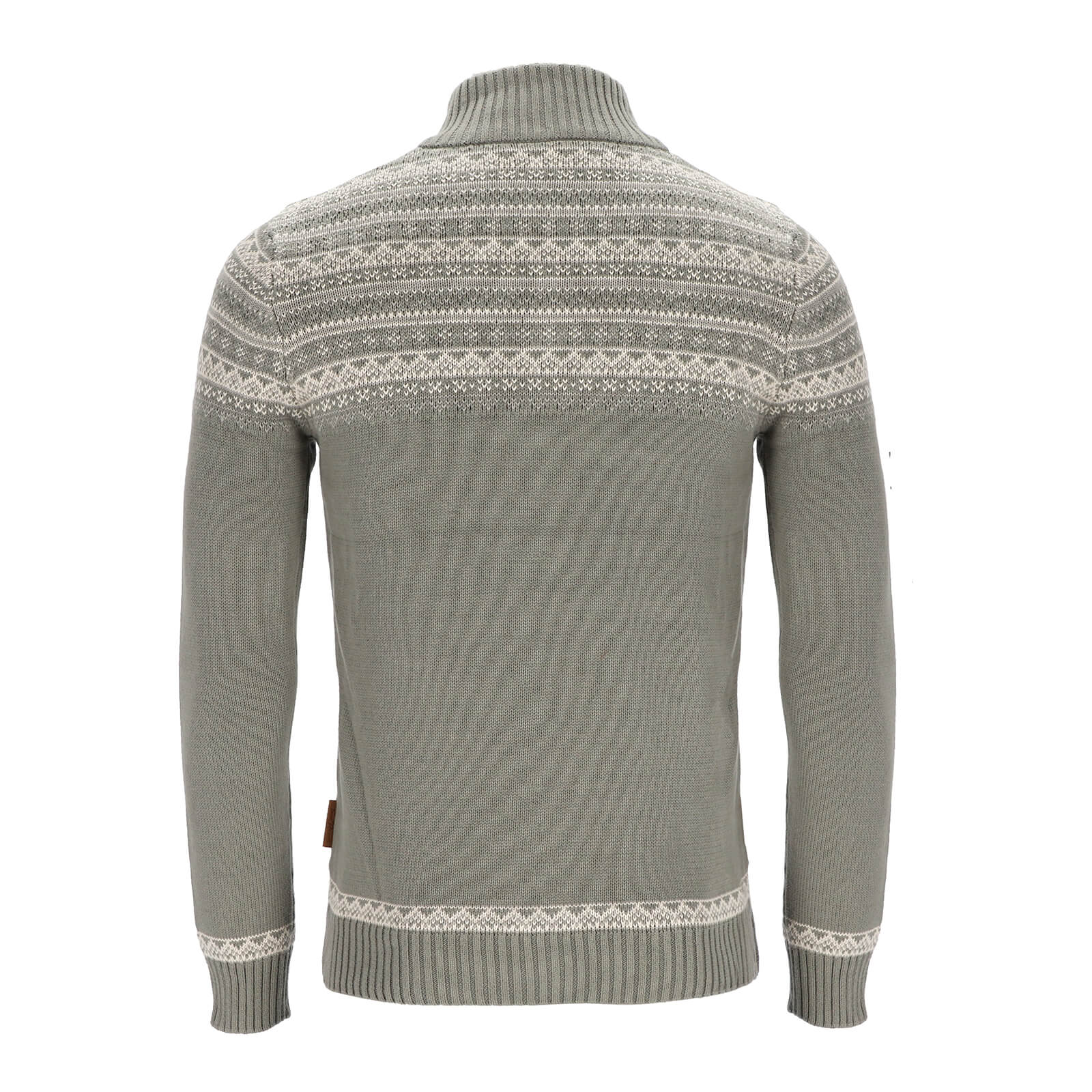 tomBrook Herren Troyer mit Norweger-Strick-Muster - Strickpullover mit Troyer-Kragen aus Baumwolle in Grau-Grün Größe S