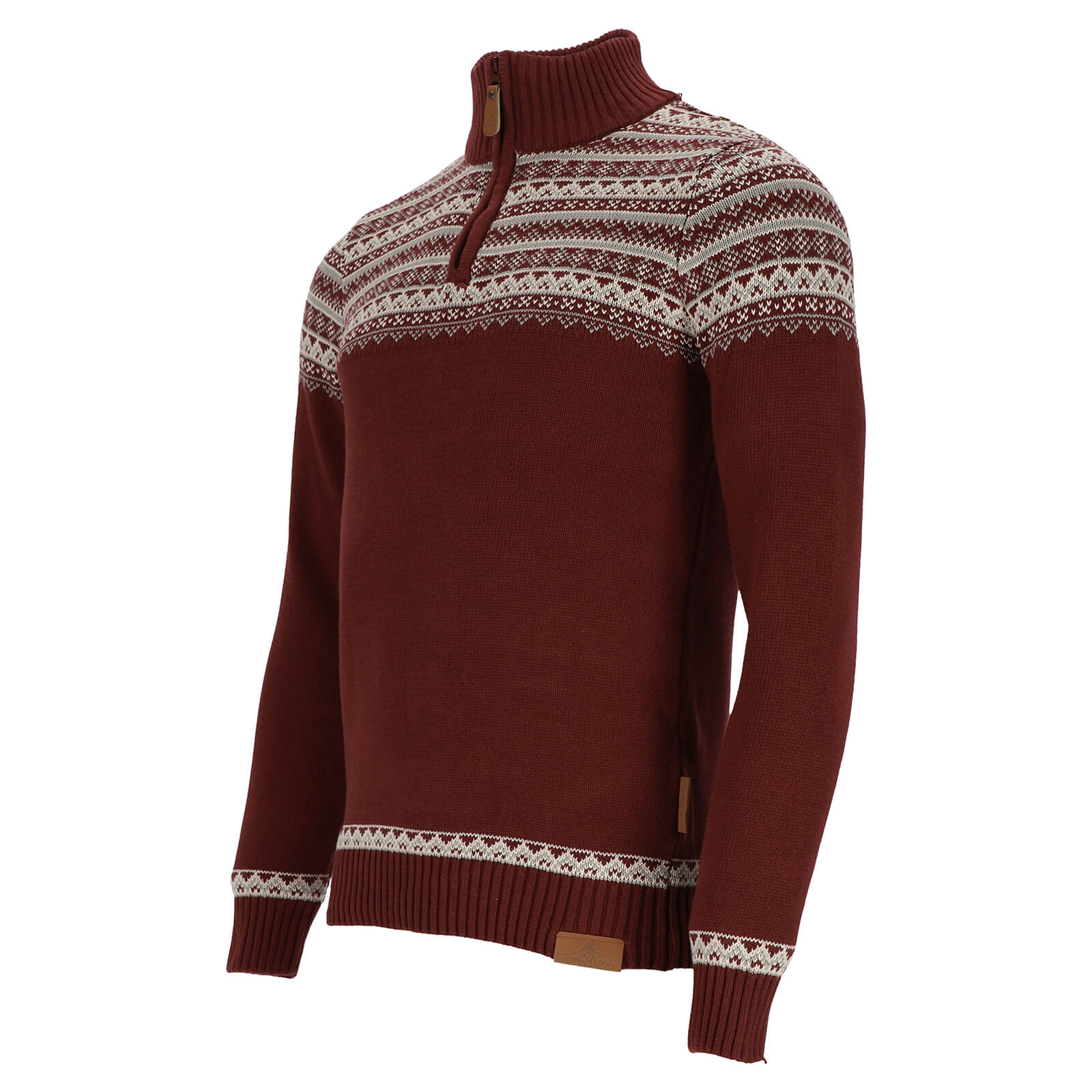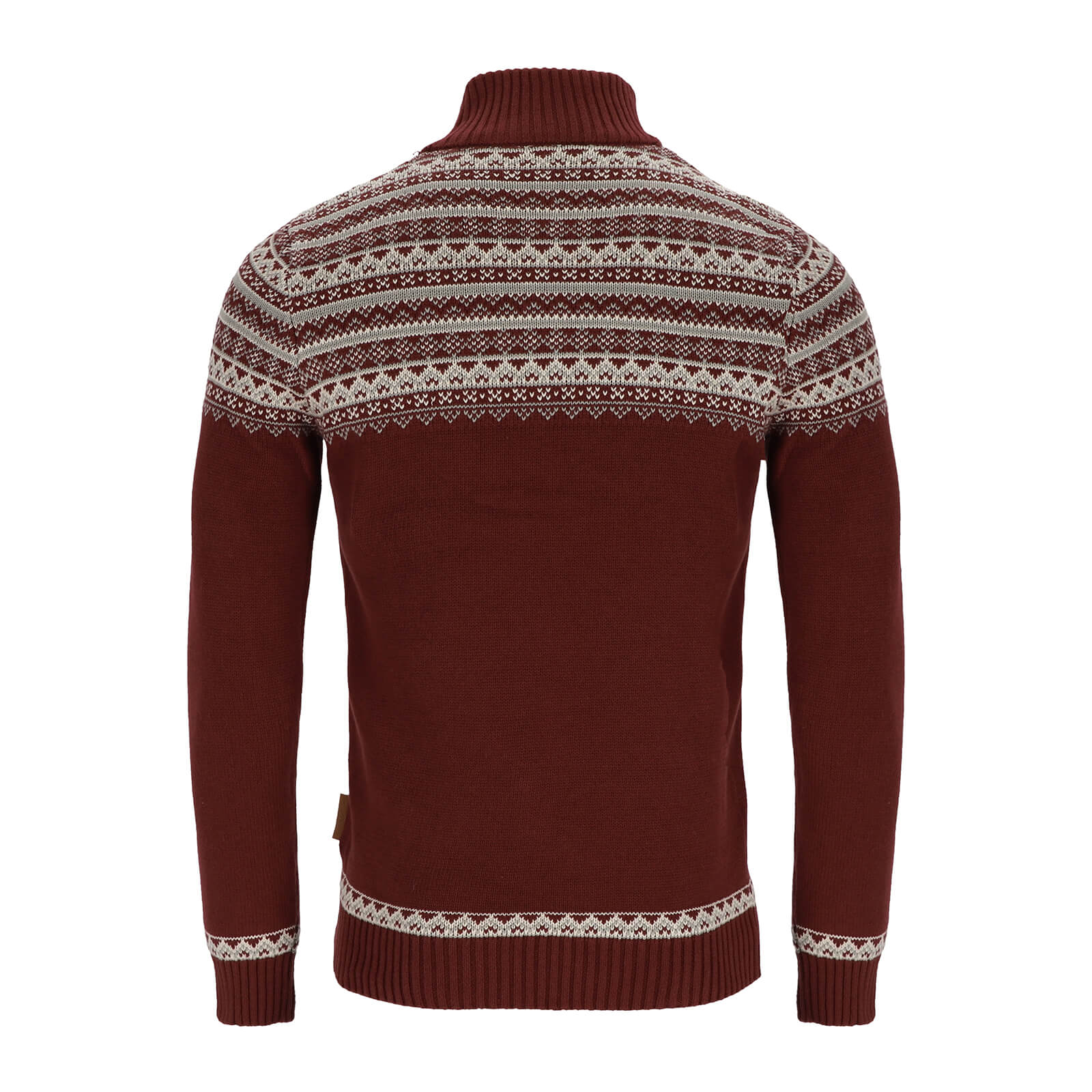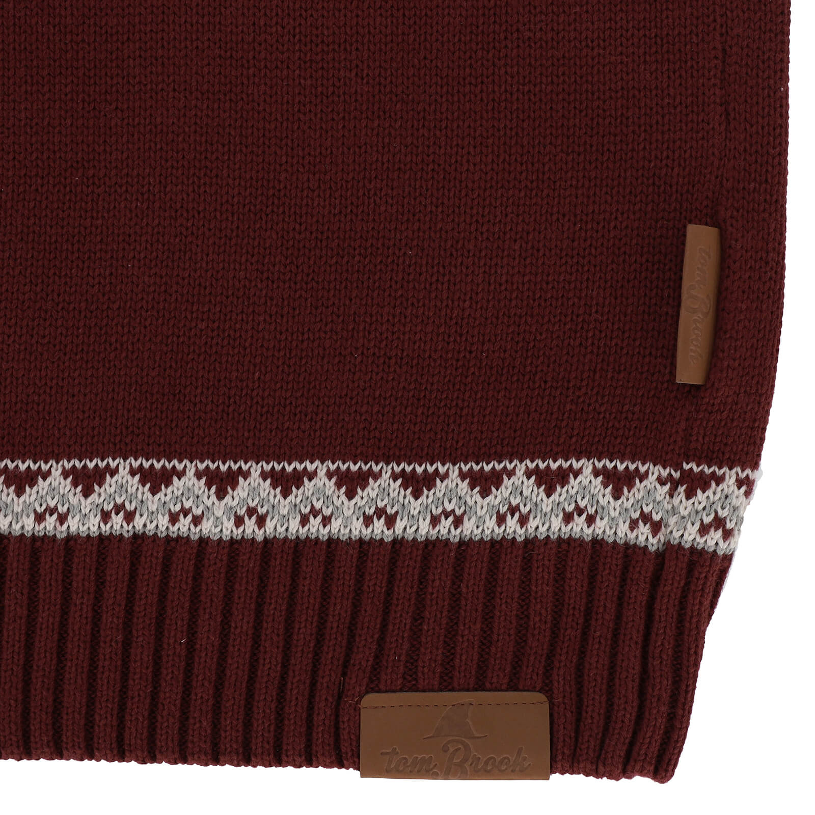 tomBrook Herren Troyer mit Norweger-Strick-Muster - Strickpullover mit Troyer-Kragen aus Baumwolle in Dark Red Größe S