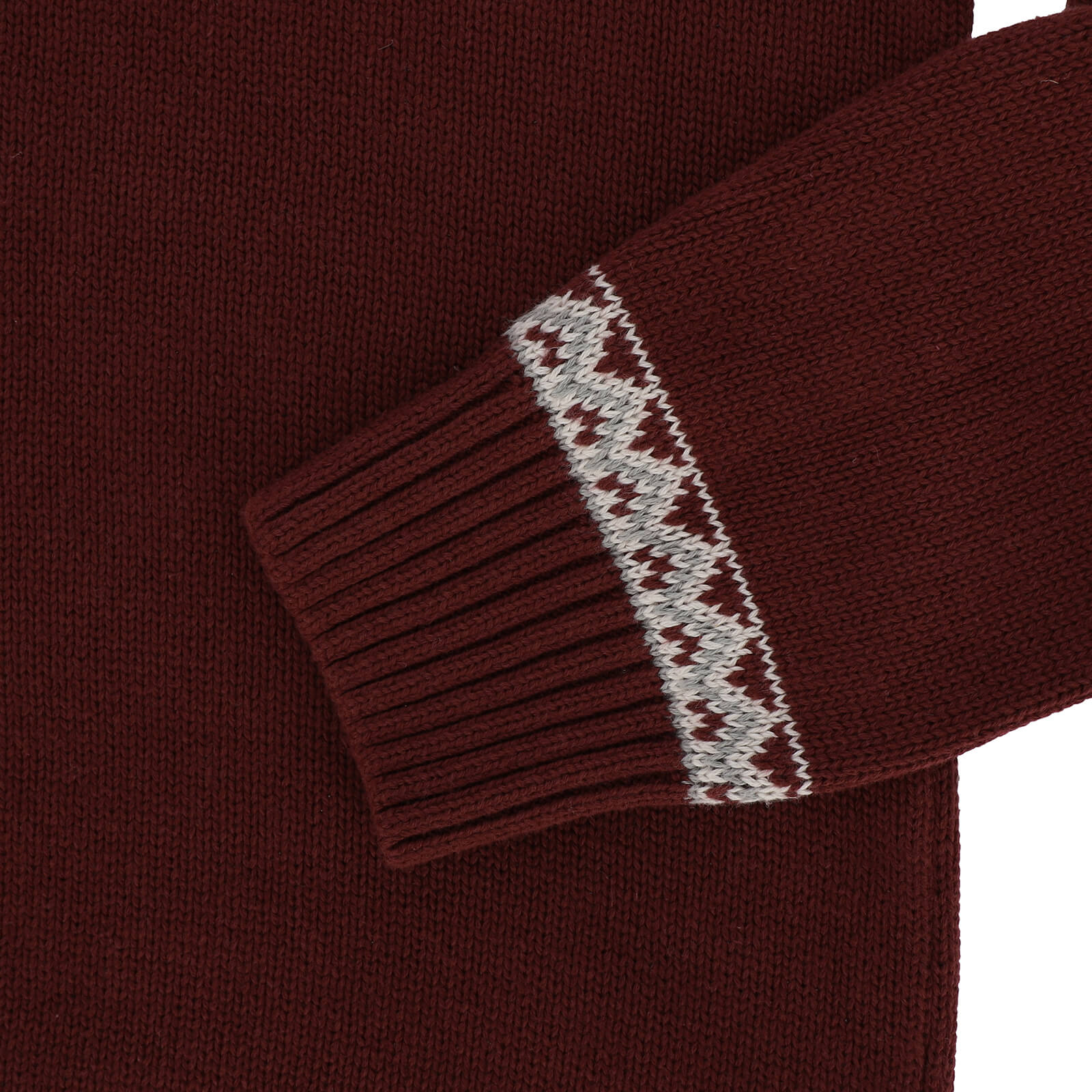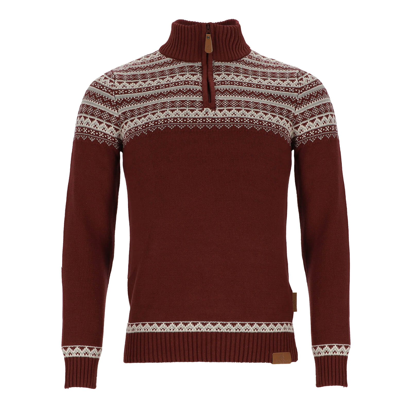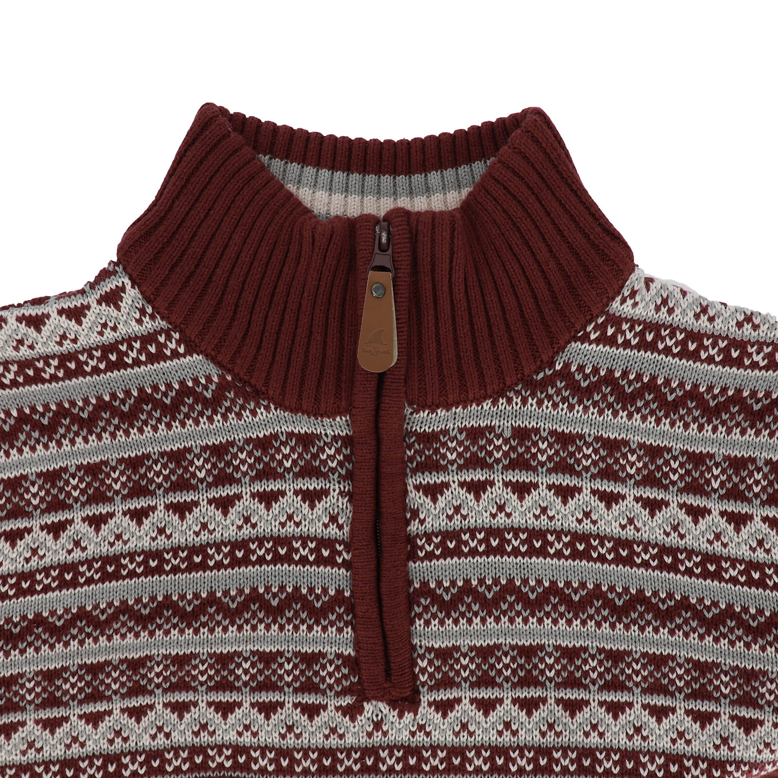 tomBrook Herren Troyer mit Norweger-Strick-Muster - Strickpullover mit Troyer-Kragen aus Baumwolle in Dark Red Größe S