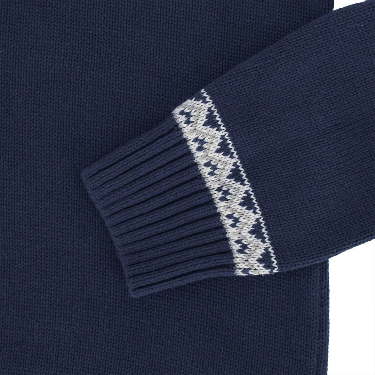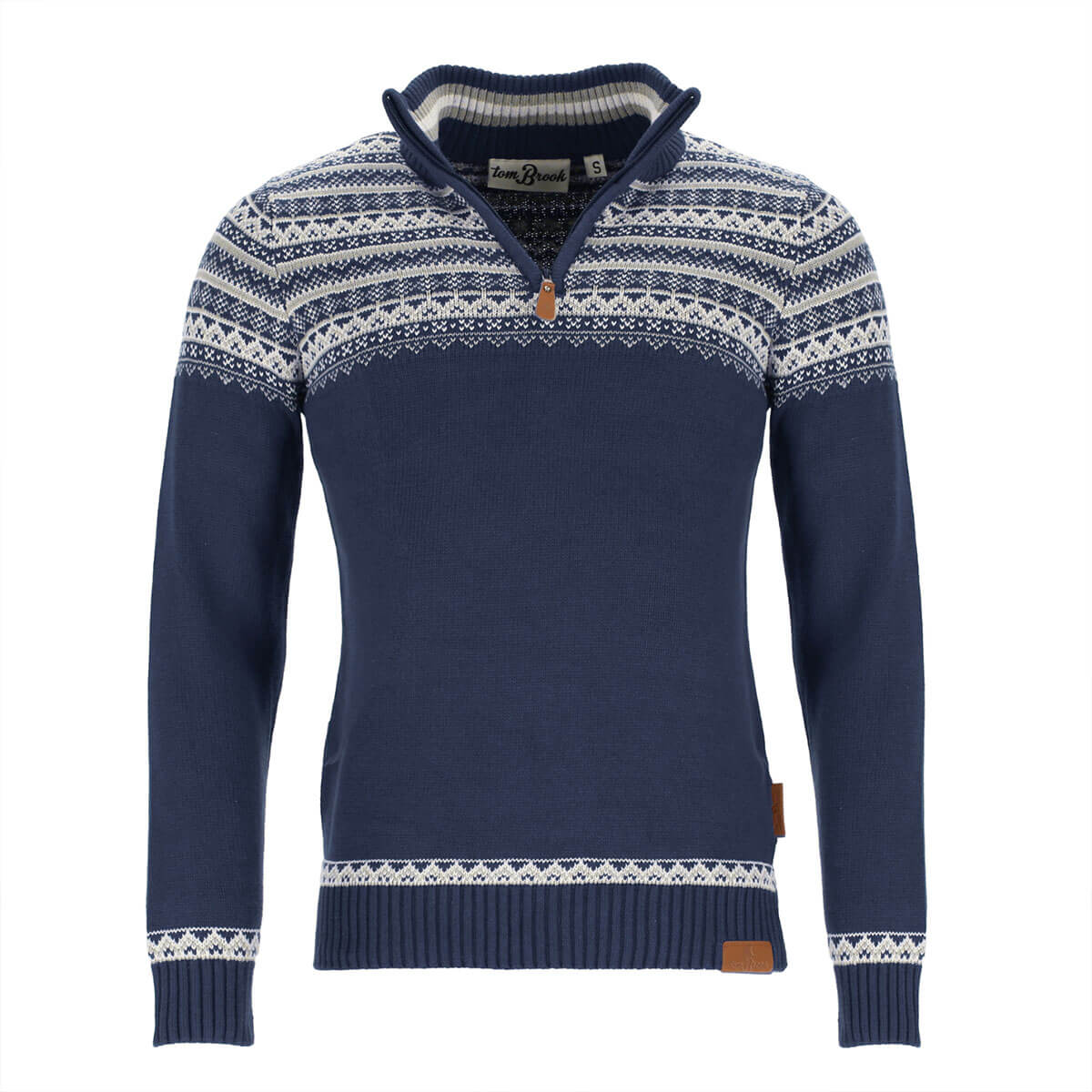 tomBrook Herren Troyer mit Norweger-Strick-Muster - Strickpullover mit Troyer-Kragen aus Baumwolle in Blau Größe S
