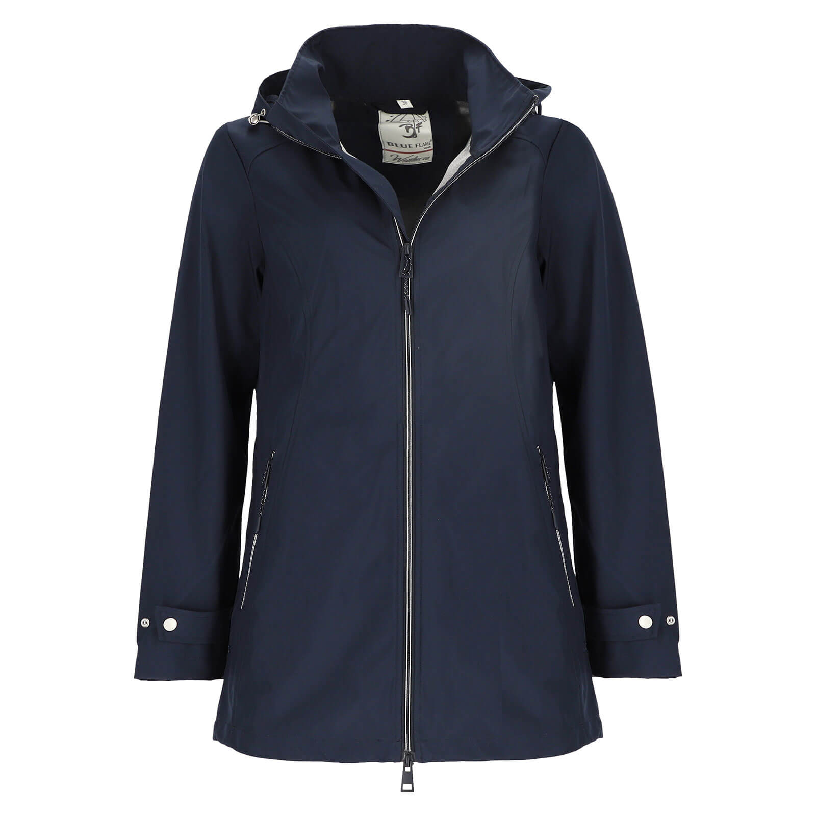Blue Flame Damen Softshellmantel mit abnehmbarer Kapuze - Lange Softshelljacke winddicht in Marine Größe 40