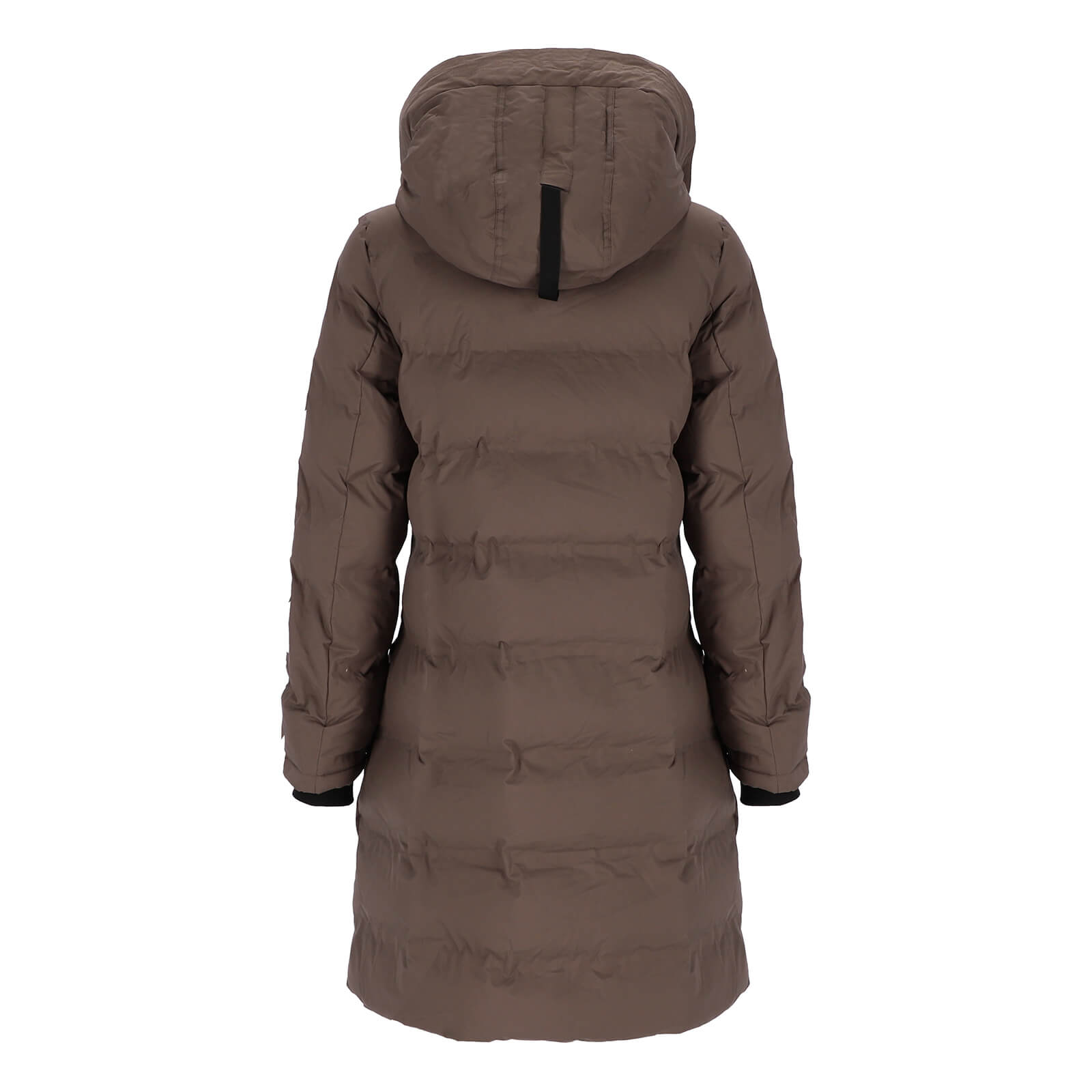 Blue Flame Damen Steppmantel mit Kapuze - Lange Steppjacke mit Chintzfutter in Tonbraun Größe 38