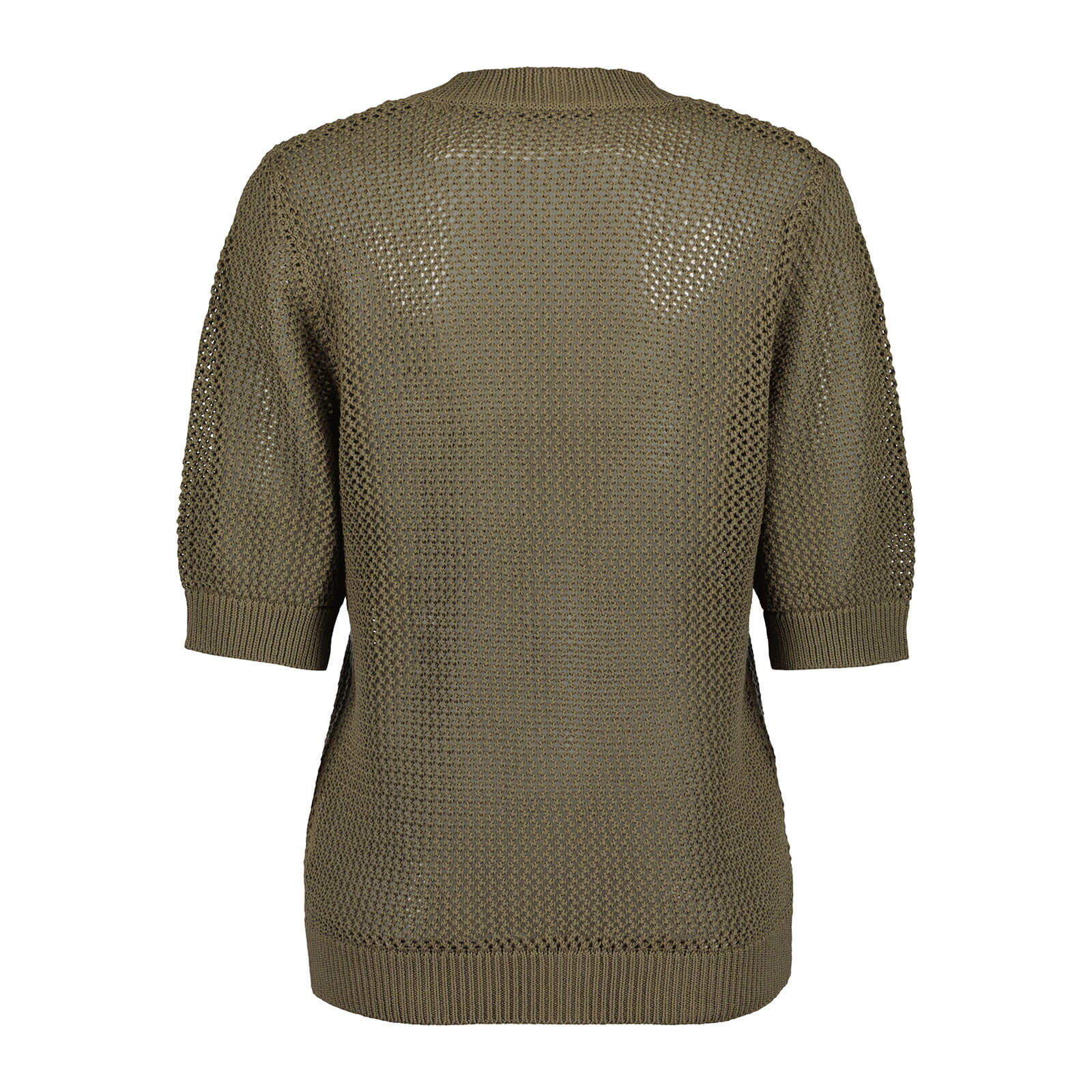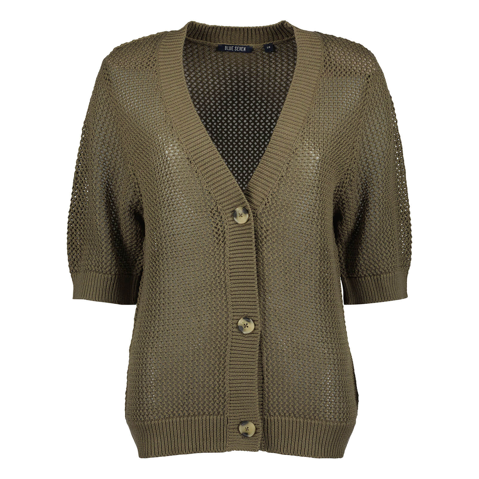 Blue Seven Damen Strickjacke mit Loch-Muster & 3/4-Arm - Unifarbener Cardigan mit Knopfleiste in Tee Größe 38
