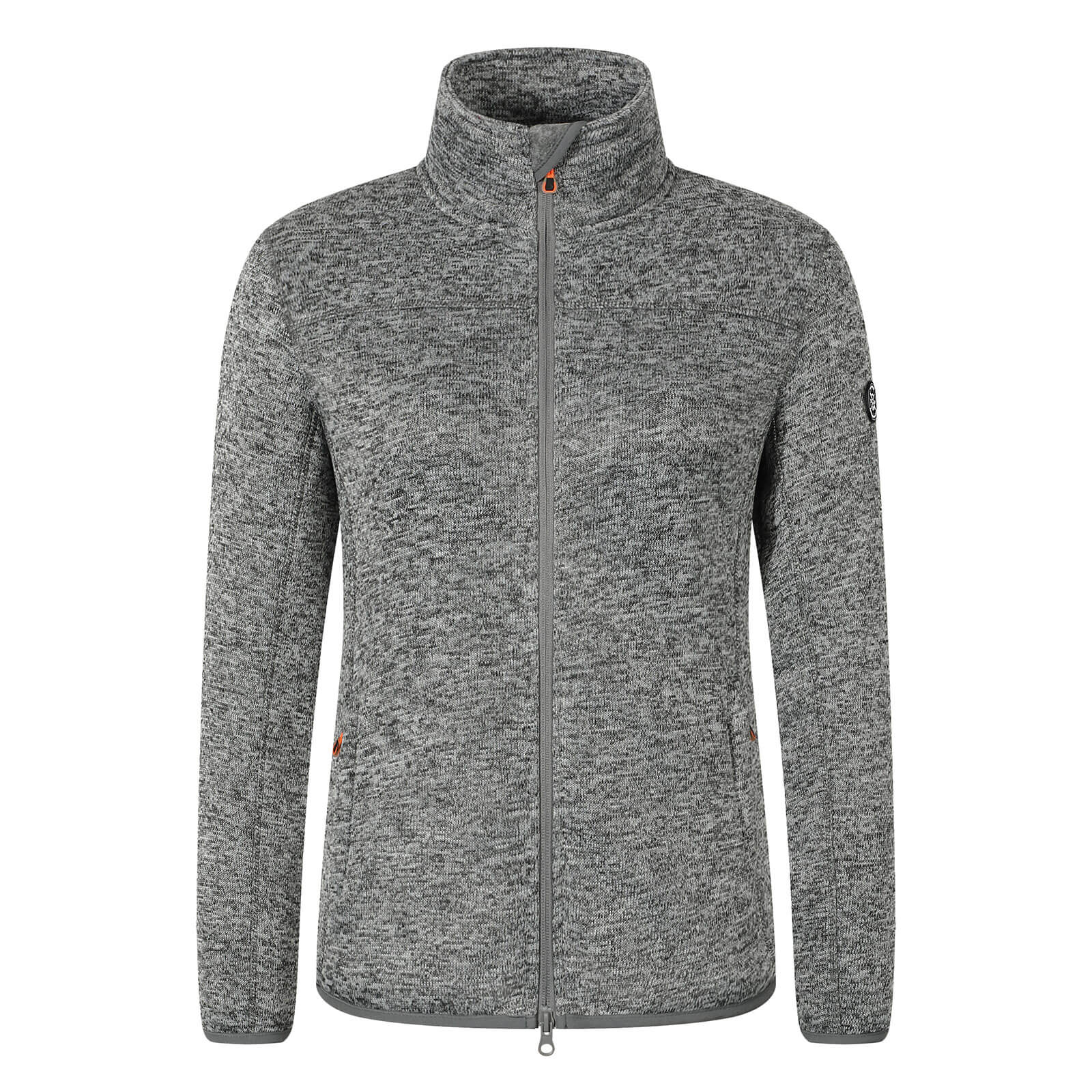 Gefertigt aus 280 g/m² Fleece in Strickoptik, bietet die Jacke nicht nur hervorragende Wärmeisolierung, sondern auch eine angenehme Haptik für die kälteren Tage. Der praktische Stehkragen schützt optimal vor Wind, während der 2-Wege-Frontreißverschluss für Flexibilität und einfache Handhabung sorgt. Zwei Außentaschen mit Reißverschluss bieten ausreichend Platz für persönliche Gegenstände und sorgen gleichzeitig für sicheren Stauraum. Die kontrastfarbenen Reißverschlüsse setzen dezente Akzente und verleihen der Fleecejacke ein modernes Aussehen. Die Elastikabschlüsse an Arm und Bund gewährleisten eine ideale Passform und einen hohen Tragekomfort. Mit einer Rückenlänge von ca. 68 cm (bei Größe 38) ist die Jacke angenehm geschnitten und bietet ausreichend Schutz vor Wind und Wetter. Dezente Applikationen an Arm und Front runden das Design stilvoll ab.