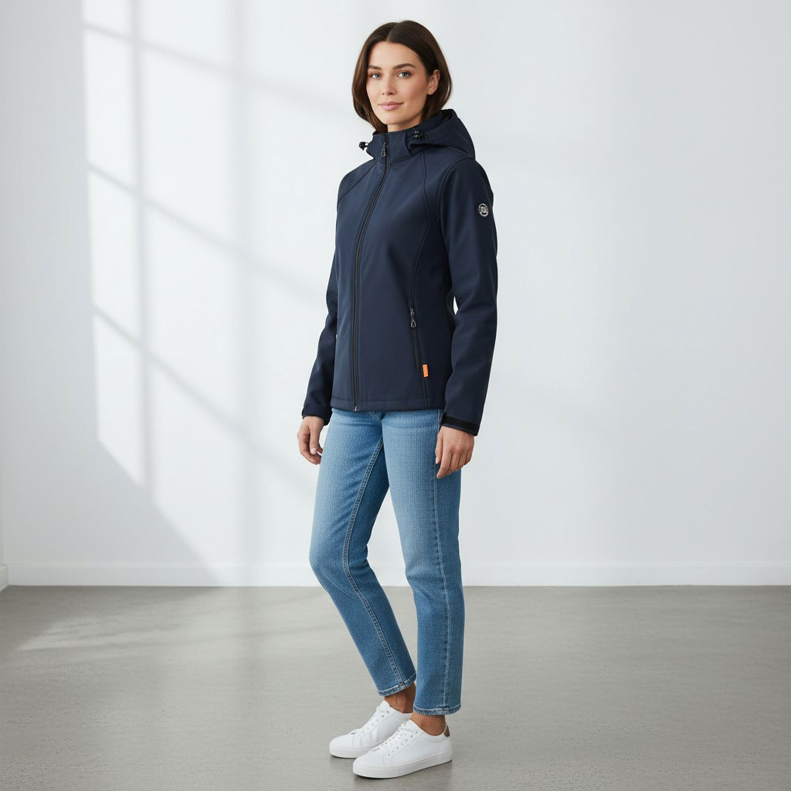 Blue Wave Damen Softshelljacke Maite mit abnehmbarer Kapuze - Jacke winddicht und atmungsaktiv in Marine Größe 36
