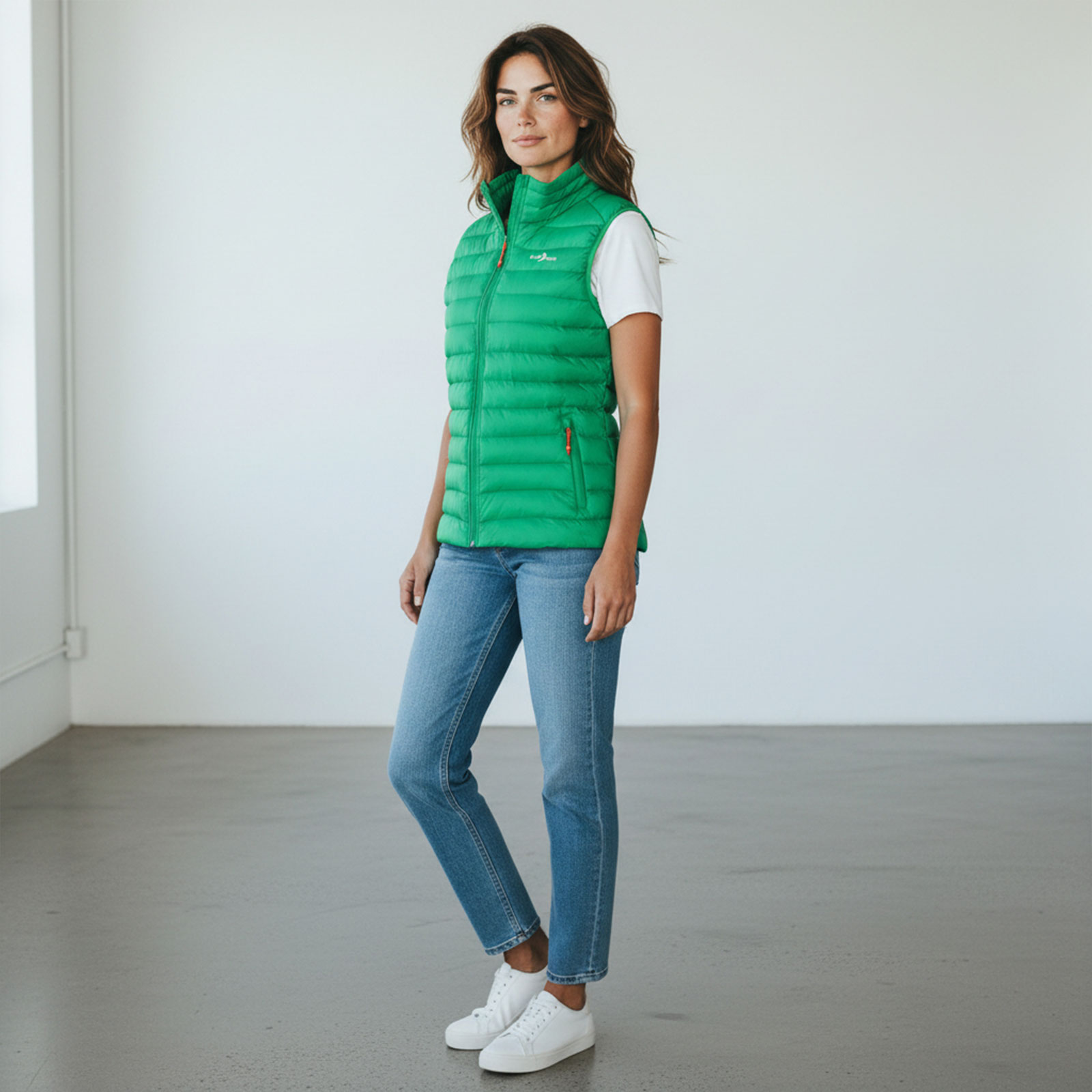 Die feine Steppoptik mit Stehkragen sorgt für eine feminine Silhouette und schützt zuverlässig vor kühler Luft – perfekt für die Übergangszeit, Outdoor-Aktivitäten oder den Alltag. Dank der cleveren Packable-Funktion lässt sich die Weste platzsparend in dem mitgelieferten Beutel verstauen. So ist sie jederzeit griffbereit – ob auf Reisen, beim Spaziergang oder unterwegs in der Stadt. Der 2-Wege-Frontreißverschluss bietet zusätzliche Bewegungsfreiheit und ermöglicht flexibles Tragen, während die zwei Außentaschen mit Reißverschluss Platz für Smartphone, Schlüssel oder andere Essentials bieten. Die leichte Wattierung mit Einzelkammerfüllung sorgt für angenehme Wärme ohne aufzutragen und bietet hohen Tragekomfort. Zipper-Puller in Kontrastfarbe sowie der dezente Logo-Print auf der Brust setzen modische Akzente und unterstreichen den sportlich-modernen Look dieser Weste.