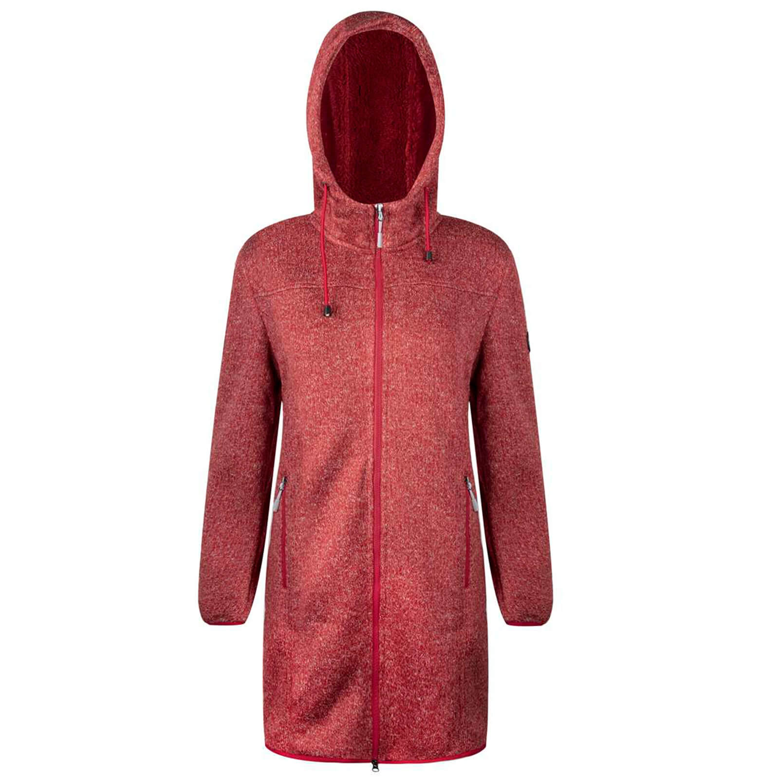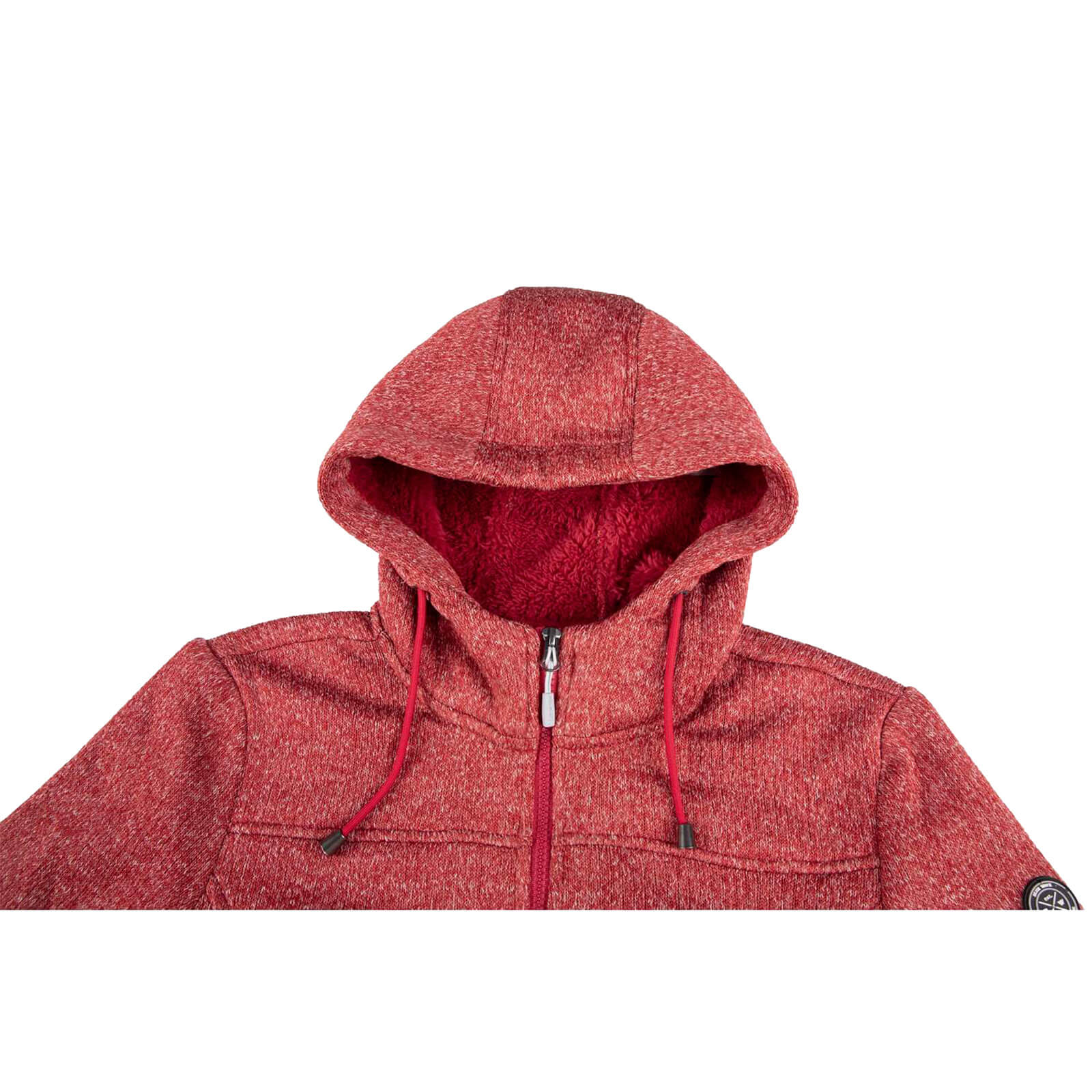 Blue Wave Damen Strickfleecemantel Naomi mit warmen Teddy-Futter - Fleecemantel mit Kapuze in Granat Rot Melange Größe 36
