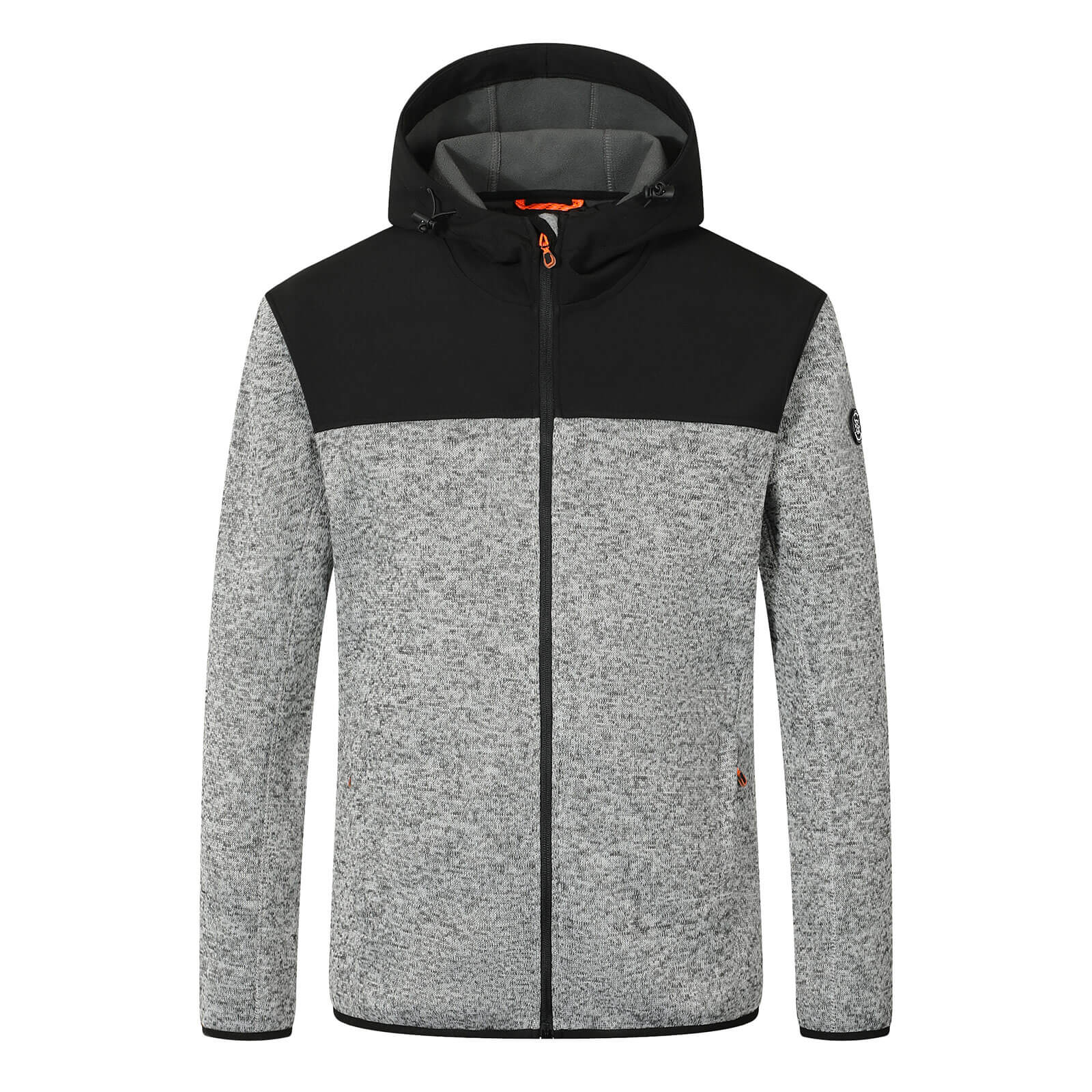 Blue Wave Herren Fleecejacke Ole mit Kapuze - Jacke in Melange Strickoptik in Grau Melange Größe S