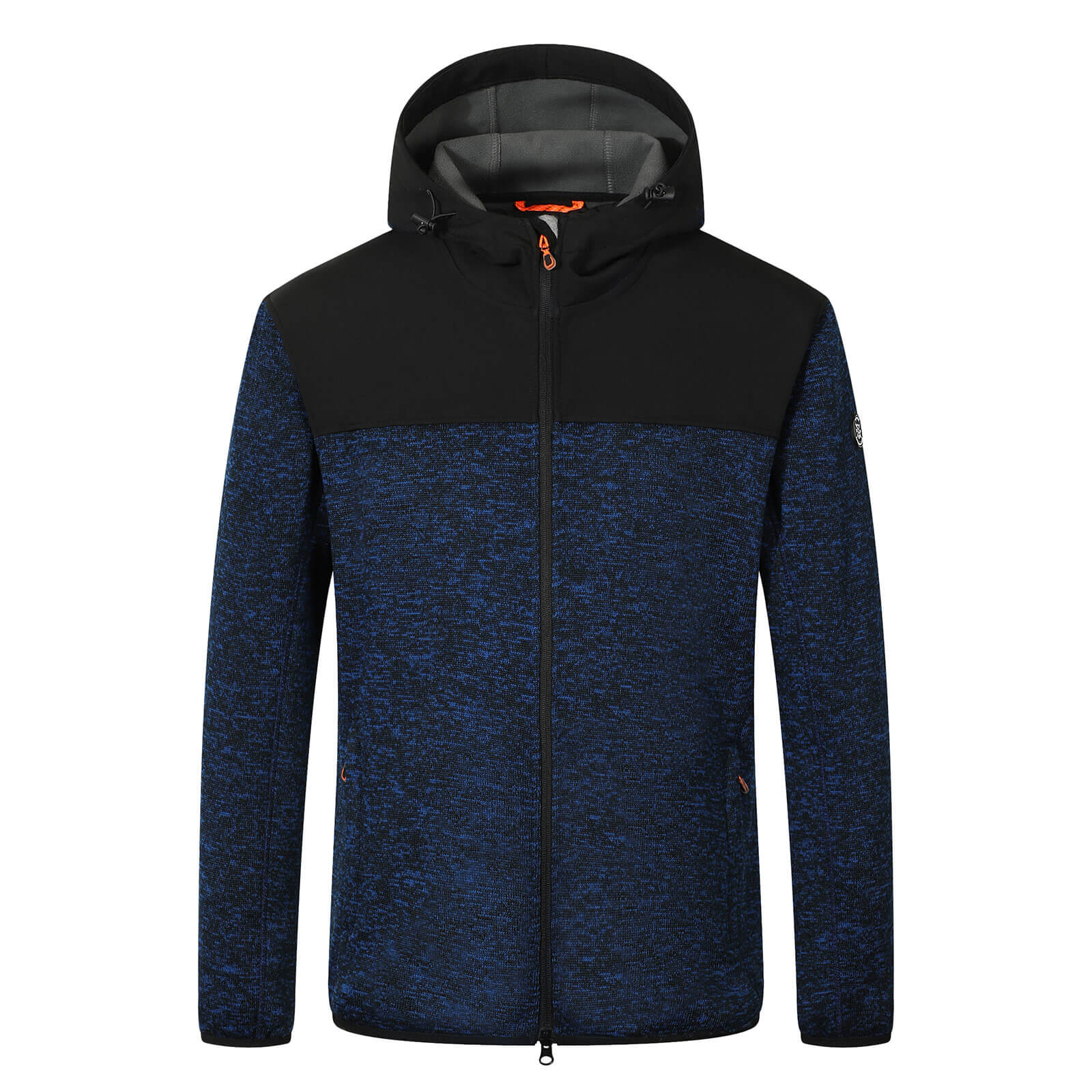 Die Strickoptik verleiht der Jacke einen sportlich-urbanen Look, während das Material mit ca. 300 g/m² angenehm wärmt und gleichzeitig bewegungsfreundlich bleibt. Ideal für Outdoor-Aktivitäten, Freizeit, Arbeit oder als wärmende Zwischenschicht an kühleren Tagen. Besonders beanspruchte Bereiche wie Schultern und Kapuze sind mit Softshell-Material ausgestattet und bieten zusätzlichen Schutz vor Wind und leichten Witterungseinflüssen. Die verstellbare Kapuze ermöglicht eine individuelle Passform, während der 2-Wege-Frontreißverschluss maximale Flexibilität im Alltag bietet – ob im Sitzen, Gehen oder bei aktiven Bewegungen. Praktische Außentaschen mit Reißverschluss sorgen für sicheren Stauraum für Smartphone, Schlüssel oder Geldbörse. Der Elastikabschluss an Ärmeln und Bund garantiert einen optimalen Sitz und hält die Wärme zuverlässig am Körper. Zipper-Puller in Kontrastfarbe sowie eine dezente Applikation am Arm unterstreichen den modernen, sportlichen Charakter dieser Fleecejacke.
