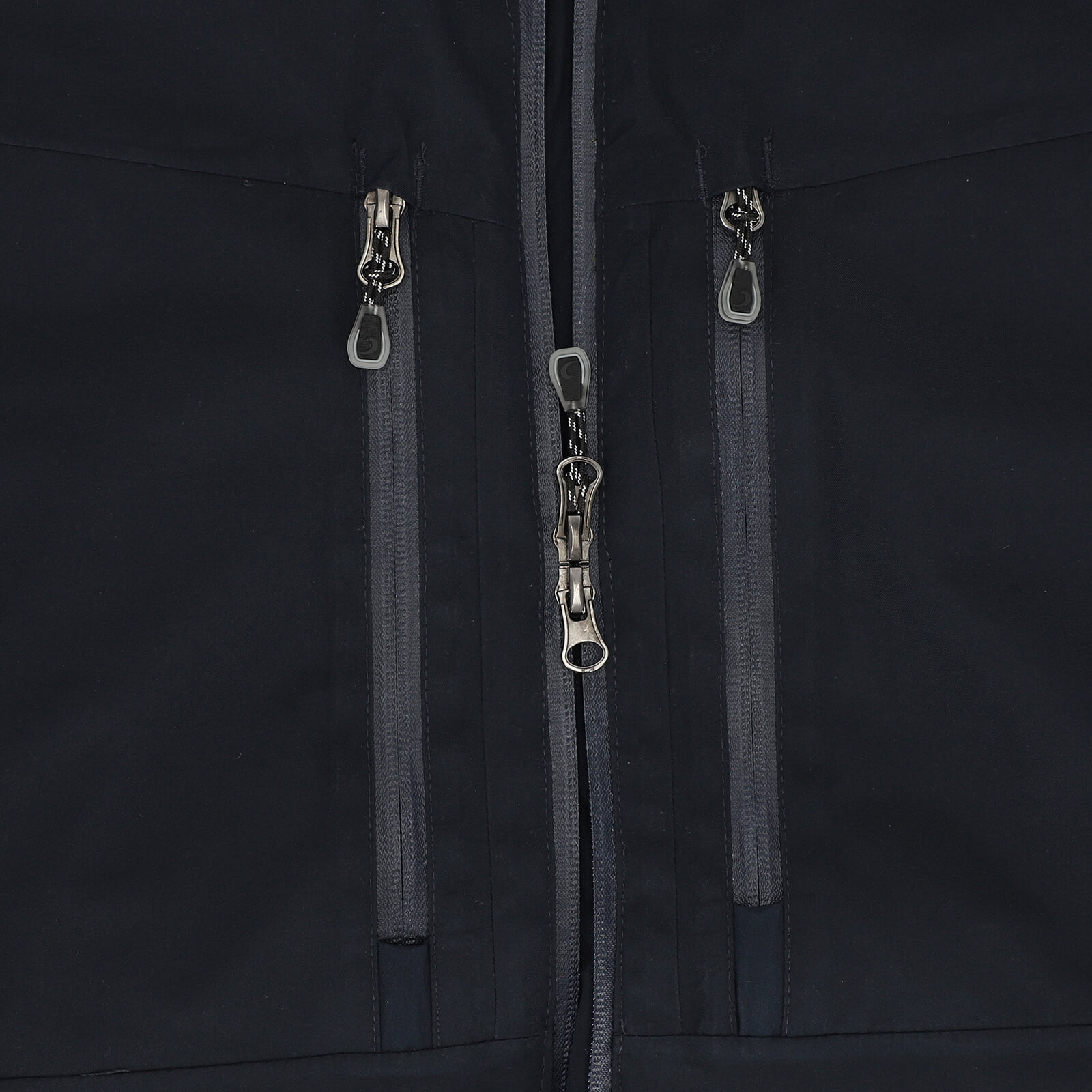 Die Jacke überzeugt mit einer Wassersäule von 10.000 mm sowie verschweißten Nähten, wodurch sie auch bei starkem Regen absolut wasserdicht ist. Gleichzeitig sorgt die Atmungsaktivität von 5000 ml/qm/24h für ein angenehmes Körperklima – perfekt für wechselhafte Bedingungen. Ein wasserfester 2-Wege-Frontreißverschluss garantiert Bewegungsfreiheit beim Sitzen, Radfahren oder Wandern. Die abnehmbare Kapuze lässt sich individuell anpassen und bietet bei Bedarf zuverlässigen Schutz vor Wind und Regen. Dank der verstellbaren Ärmelbündchen mit integriertem Elastikbund bleibt kalte Luft draußen – für spürbar mehr Komfort. Praktisch und sicher: Zwei Brusttaschen mit Reißverschluss bieten Platz für alles, was griffbereit sein muss – ob Smartphone, Geldbeutel oder Notizblock. Eine dezente Badge-Applikation am Ärmel verleiht der Jacke einen modernen, sportlich-maskulinen Look.