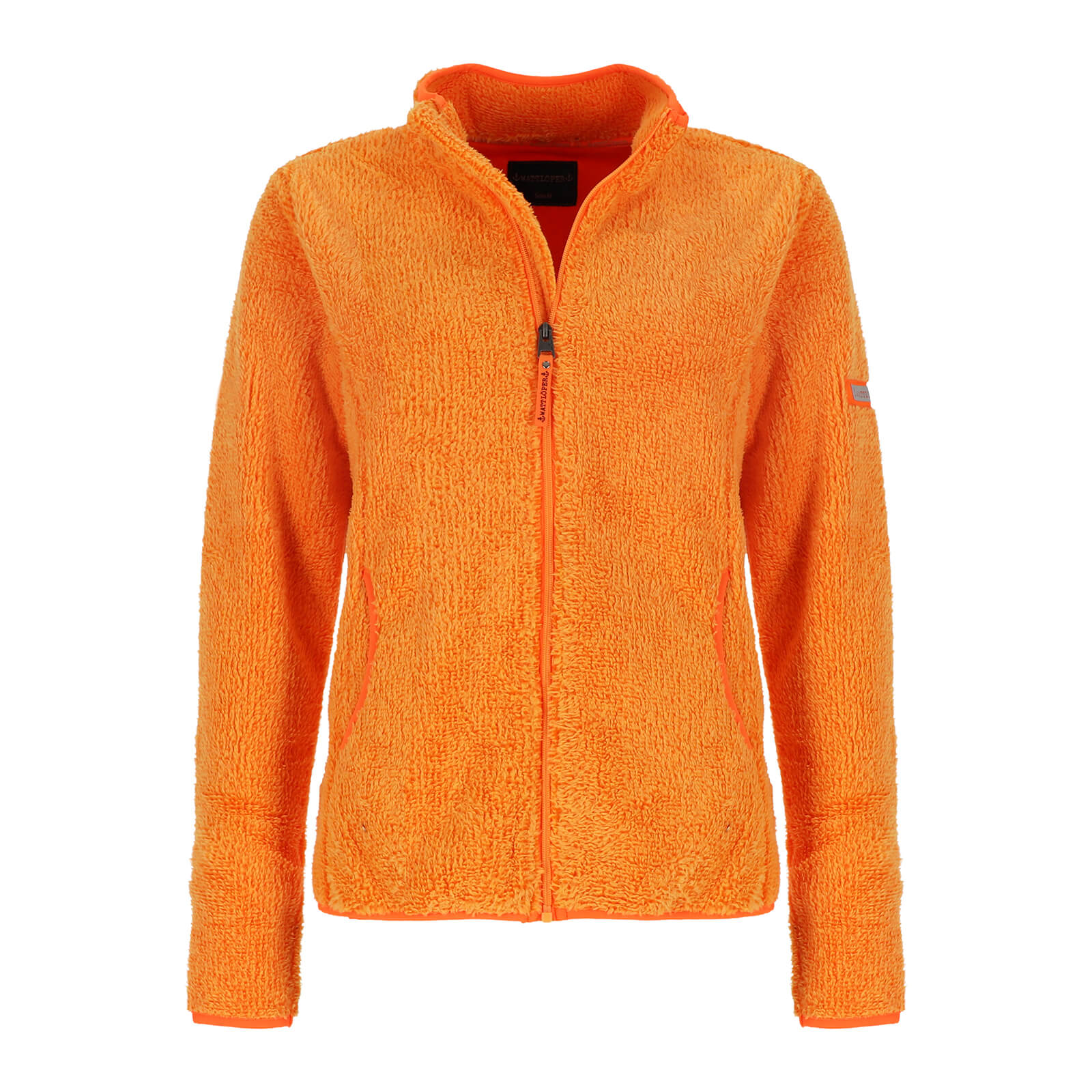 Wattlöper Damen Fleecejacke mit Stehkragen - Unifarbene Jacke mit Reißverschluss in Orange-Orange Größe M