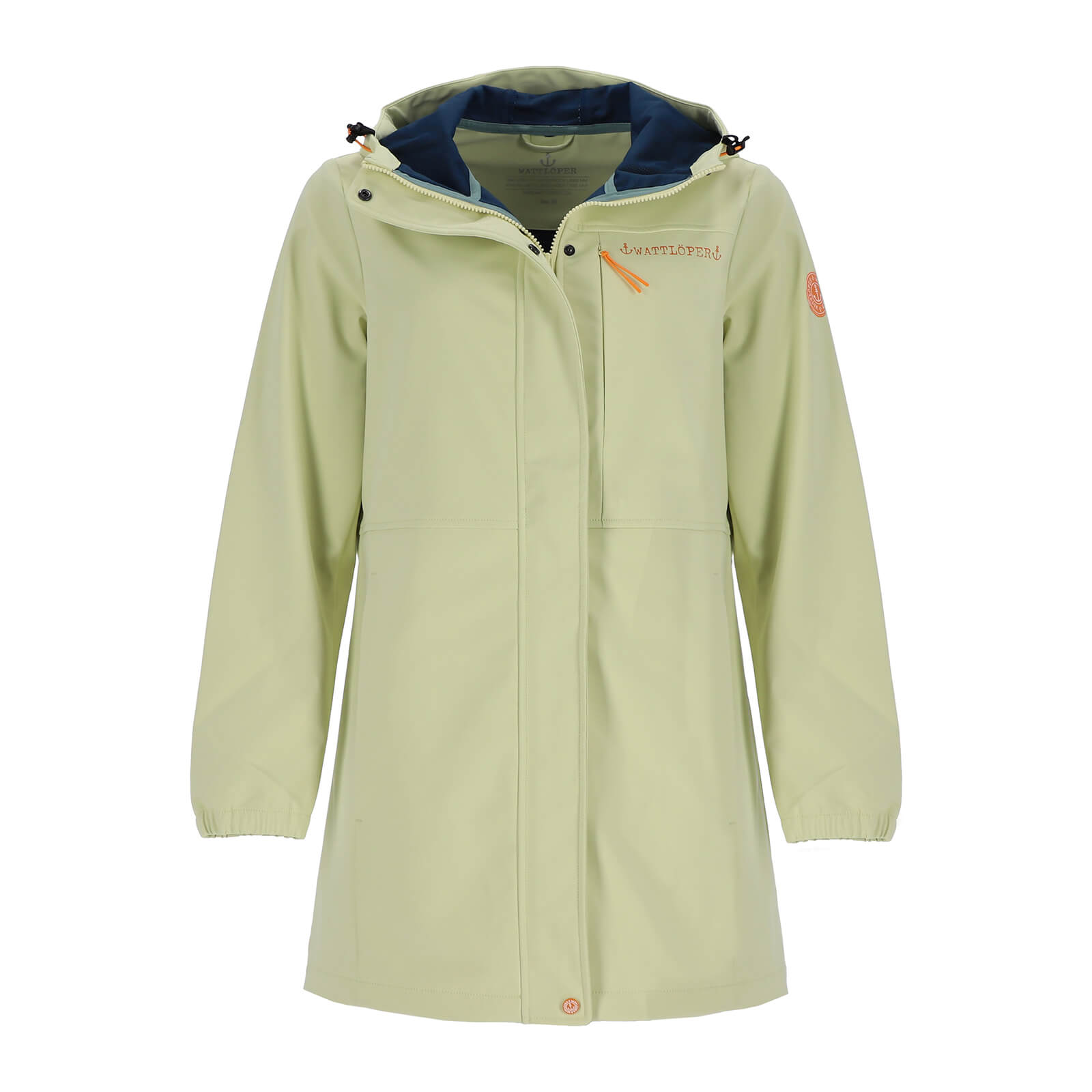 Der unifarbene Outdoor-Funktionsmantel für Damen von Wattlöper verbindet zuverlässige Wetterfunktion mit einem modernen, maritimen Look.