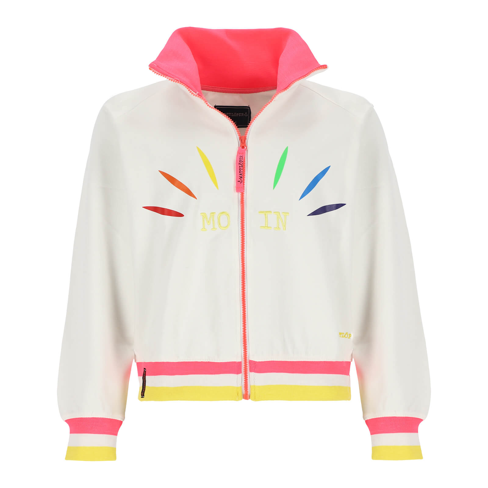 Wattlöper Damen Sweatjacke mit Schriftzug X-Stick "Anker-O-S-W" und Wattlöper - Jacke mit Stehkragen in Offwhite Größe M