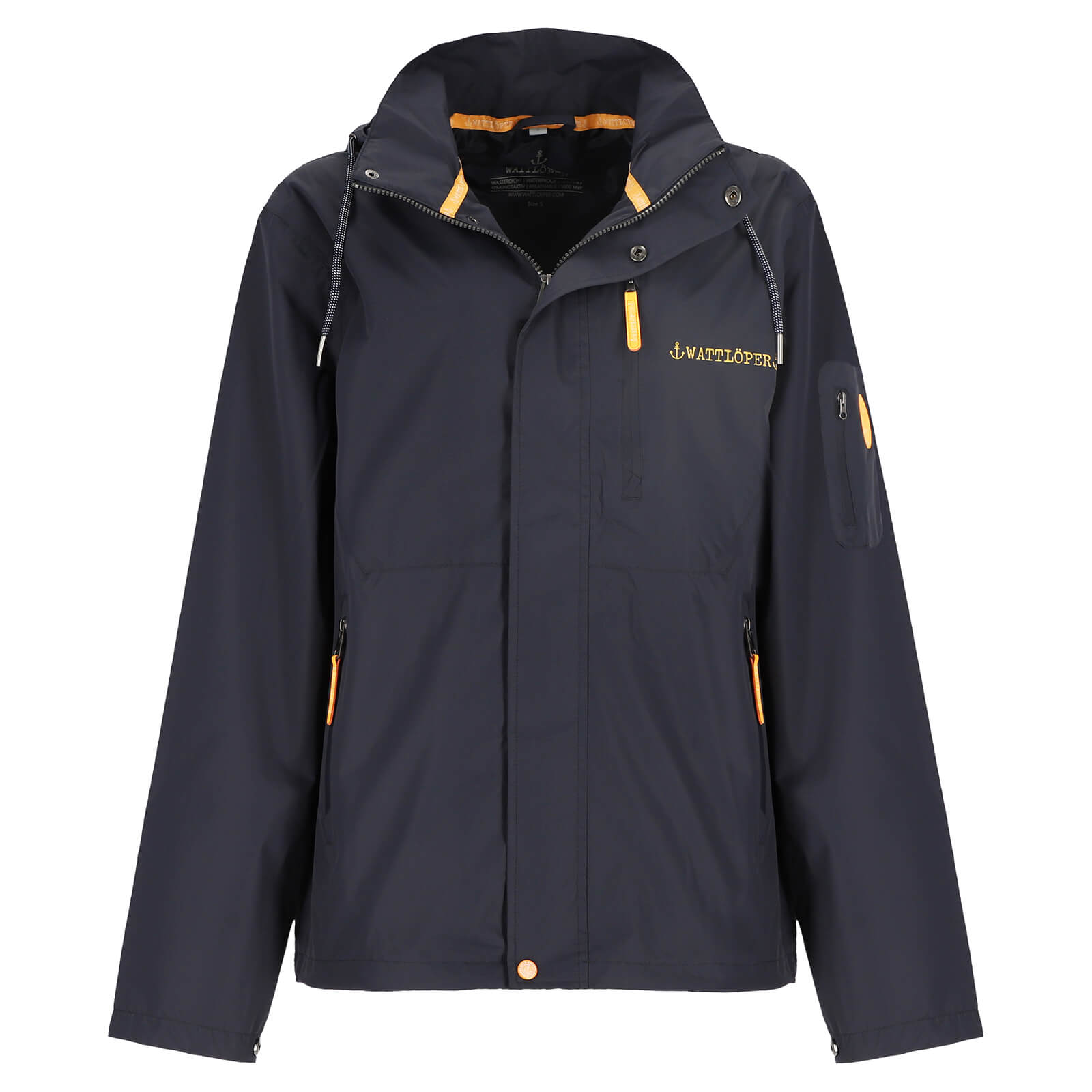 Mit einer Wassersäule von 10.000 mm ist die Herren Funktionsjacke absolut wasserdicht. Die verschweißten Nähte verhindern das Eindringen von Feuchtigkeit selbst bei starkem Niederschlag. Gleichzeitig sorgt die Atmungsaktivität von 5.000 mvp für ein angenehmes Körperklima – ideal für Outdoor-Aktivitäten, Spaziergänge oder den täglichen Weg zur Arbeit. Die abnehmbare Kapuze mit Kordelzug lässt sich flexibel anpassen und bei Bedarf einfach entfernen. Vier wasserdichte Reißverschlusstaschen – zwei seitliche Taschen, eine Brusttasche sowie eine praktische Ärmeltasche – bieten sicheren Stauraum für Smartphone, Schlüssel oder Geldbörse. Dunkelblaue Reißverschlüsse und orangefarbige Kontraste setzen dabei moderne, maritime Akzente. Der verstellbare Saum ermöglicht eine individuelle Anpassung und schützt zusätzlich vor Wind. Mit einer Rückenlänge von ca. 74 cm bietet die Jacke eine optimale Passform und ausreichend Schutz im Rückenbereich. Entwickelt für anspruchsvolle Wetterbedingungen, bietet sie dir optimalen Schutz vor Regen und Wind, ohne dabei auf Atmungsaktivität und Komfort zu verzichten.