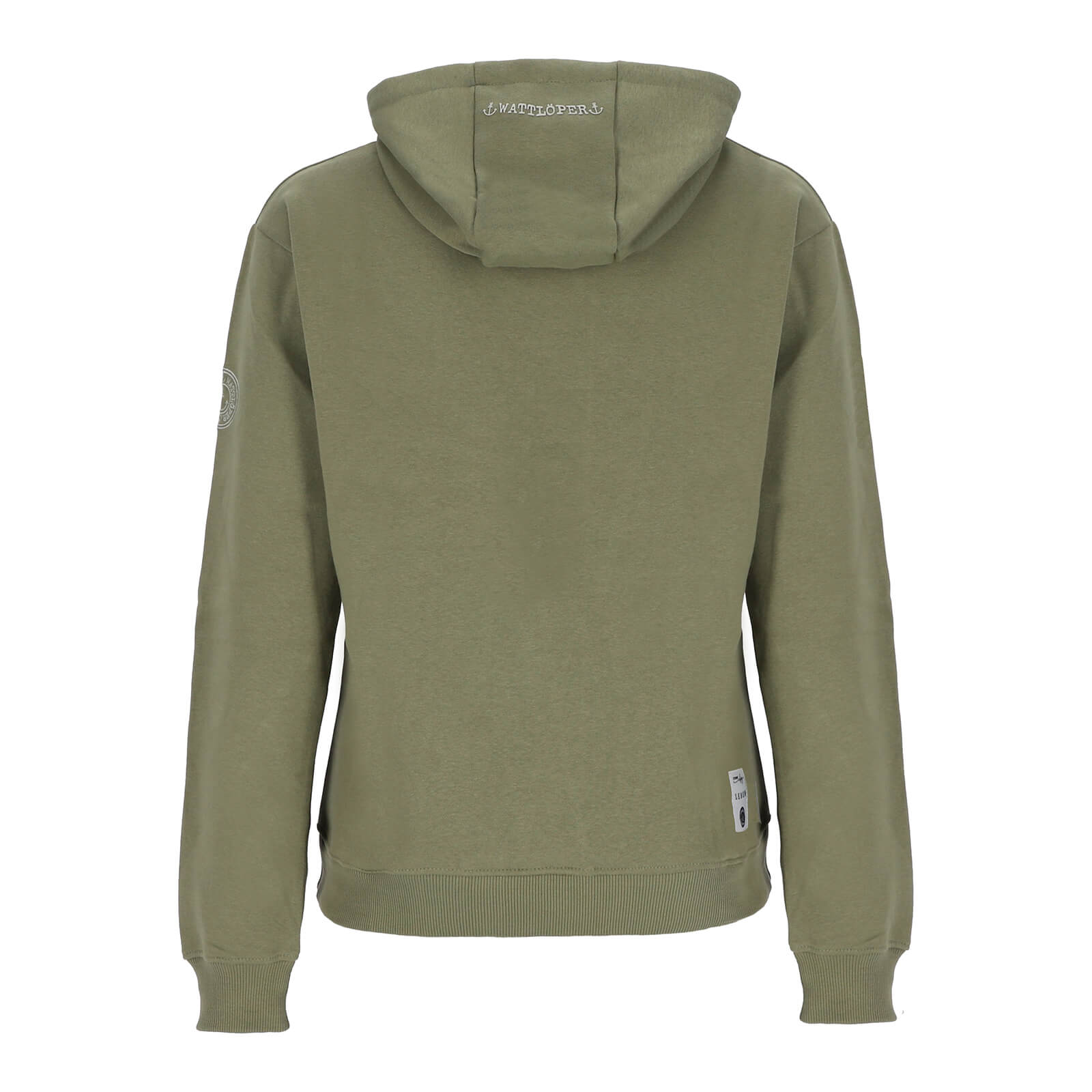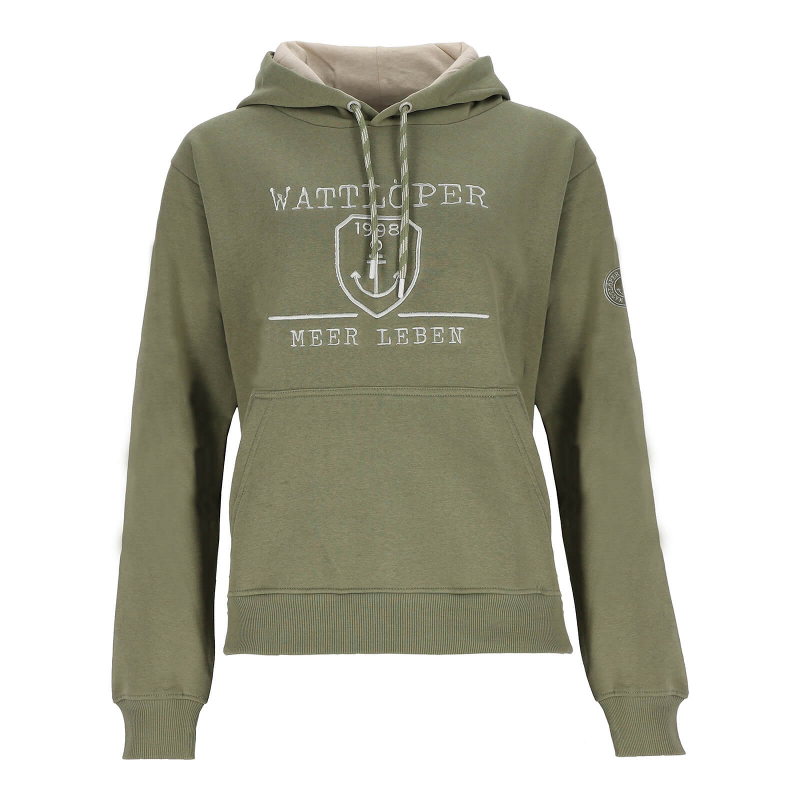 Wattlöper Unisex Sweathoody mit auffälligem Brust-Stick - Maritimer Kapuzenpullover mit Kängurutasche in Oliv Größe S