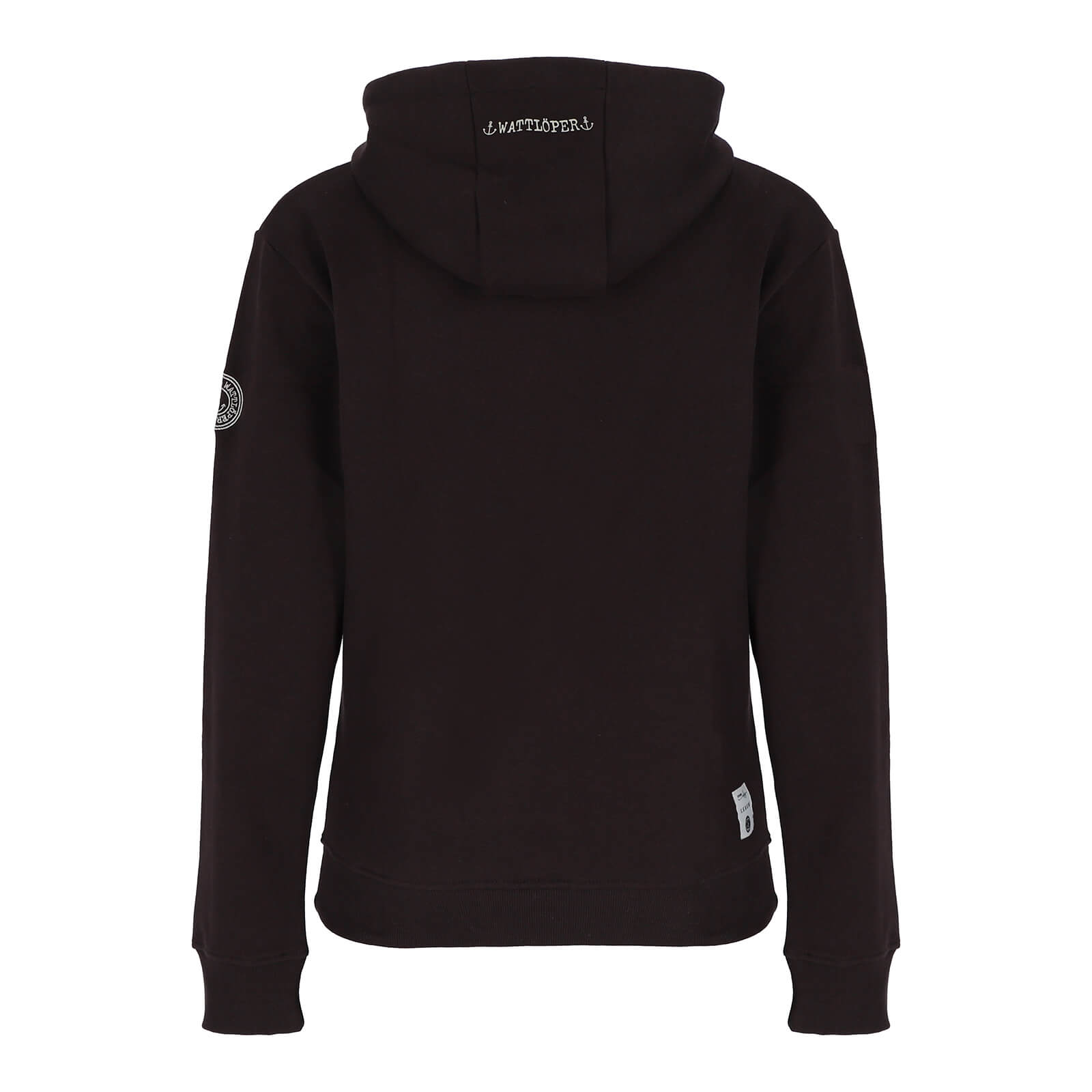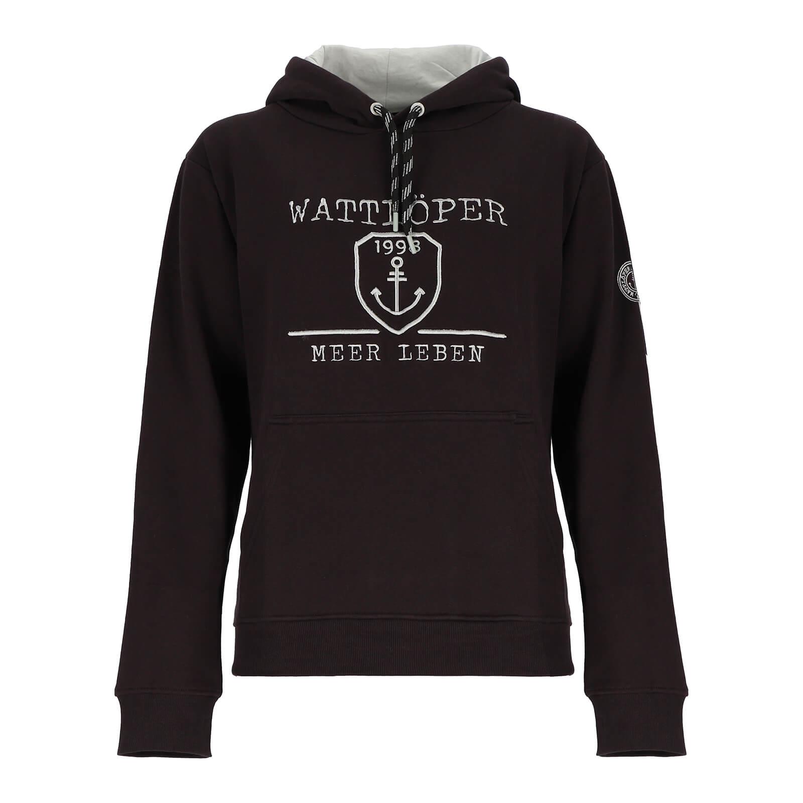 Wattlöper Unisex Sweathoody mit auffälligem Brust-Stick - Maritimer Kapuzenpullover mit Kängurutasche in Schwarz Größe S