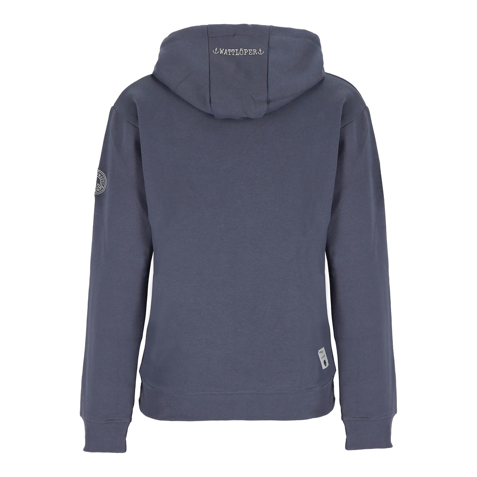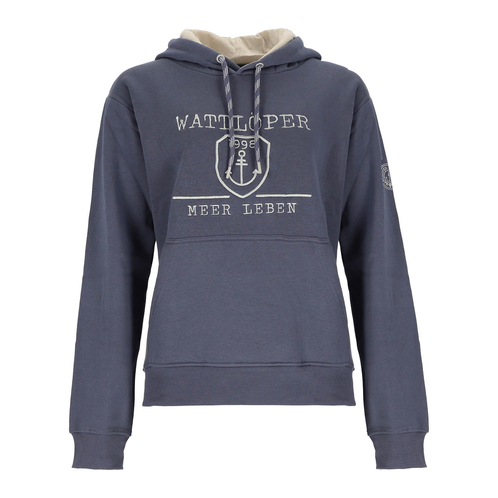 Wattlöper Unisex Sweathoody mit auffälligem Brust-Stick - Maritimer Kapuzenpullover mit Kängurutasche in Blau Größe S